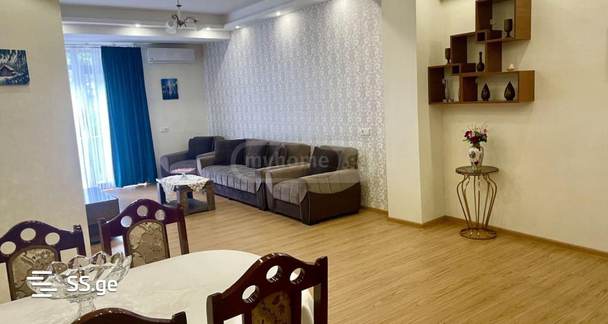 For rent in a newly built, prestigious area (directly on Kandelaki Street), a clean and tidy apartment, furnished and fully equipped. with two underground parkings. With central heating, two air conditioners, two balconies (both facing Kandelaki Street), clean insulated entrance, intercom system in the building, garage and entrance equipped with video recorder.