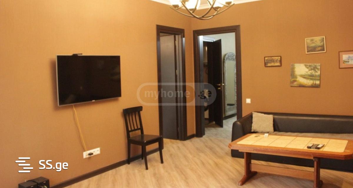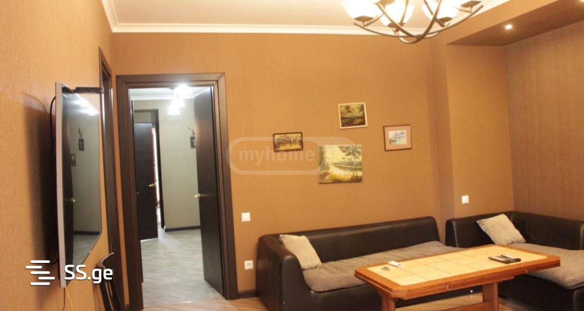110 square meters, number 58, Sulkhan Tsintsadze, 2 balconies with a view of the hippodrome and the street, 2 bedrooms, a large living room, an isolated kitchen, and of course a bathroom, a large entrance room, which you can also use for reception, it is a very bright and warm apartment.