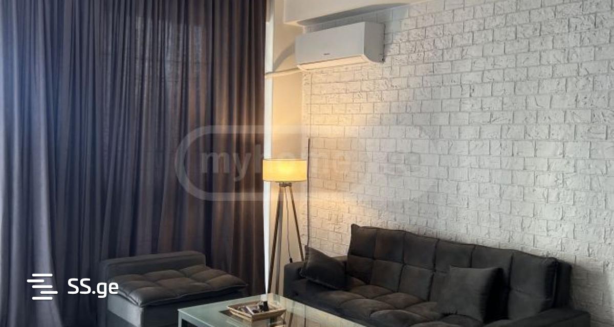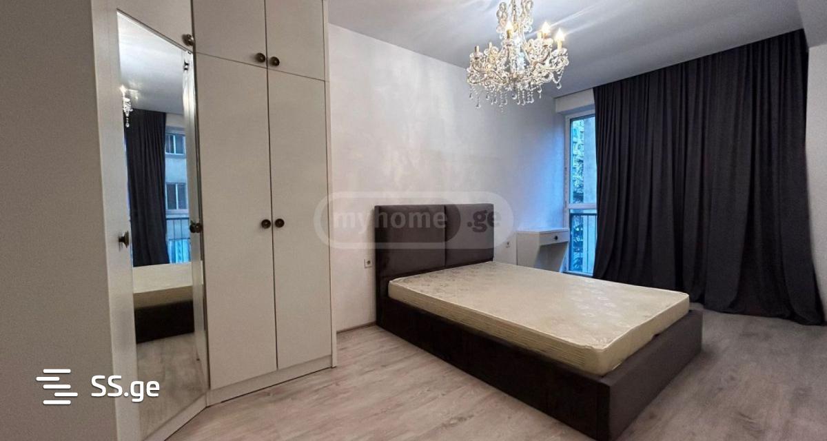 For rent in Saburtalo, Axis apartment, 100 sq.m. Apartment with 2 bedrooms. It is equipped with furniture and equipment.