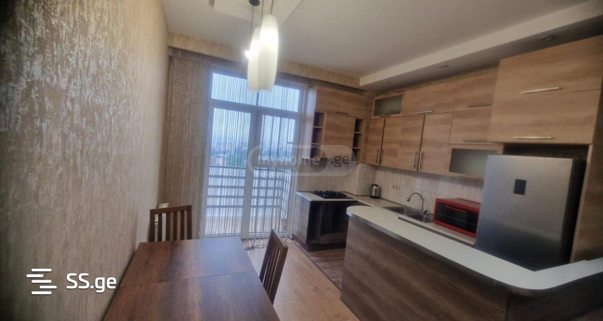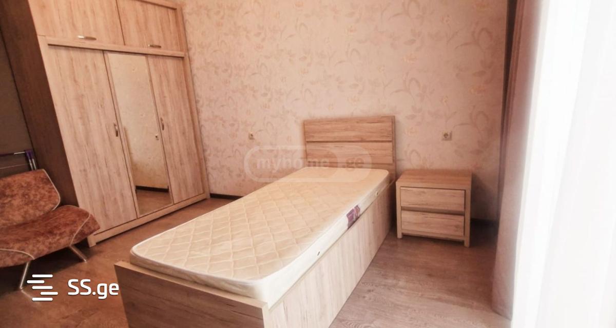 A studio apartment for rent near the Guramishvili metro station. It has two bedrooms, one with secondary lighting. There is a beautiful view from the balcony. It is located next to the European University.