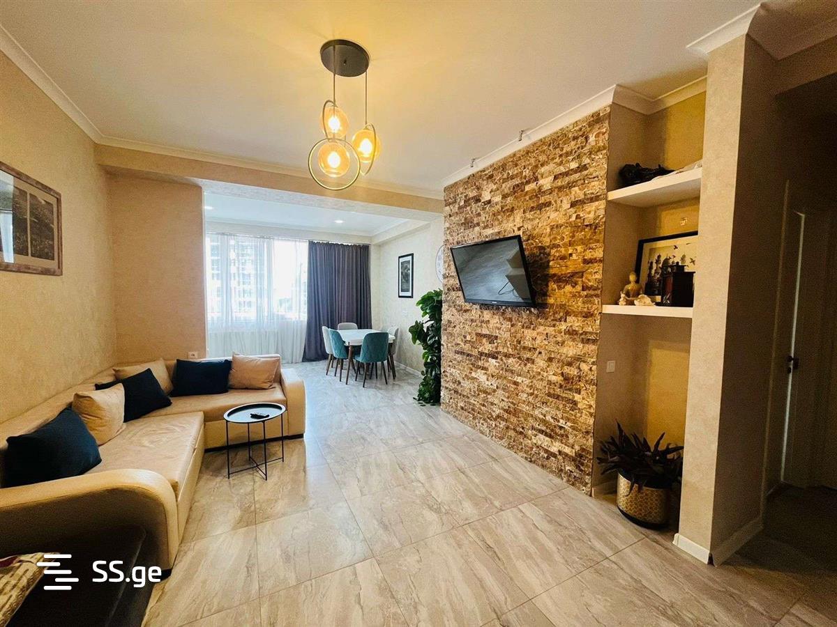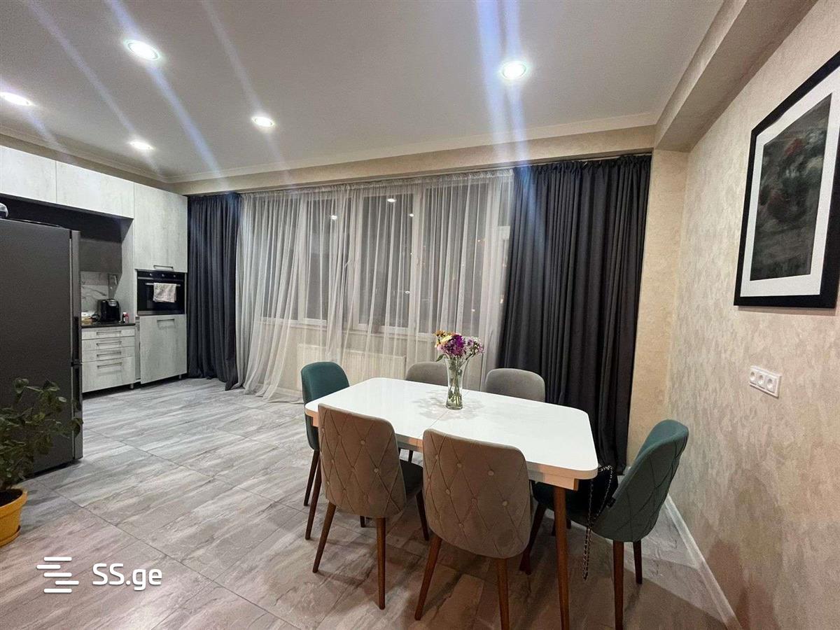 For rent, 74 G. Shatberashvili Street, Vakeshi. Three-room furnished apartment, with furniture and appliances. Parking place in the garage, 105 sq.m., 4th floor.