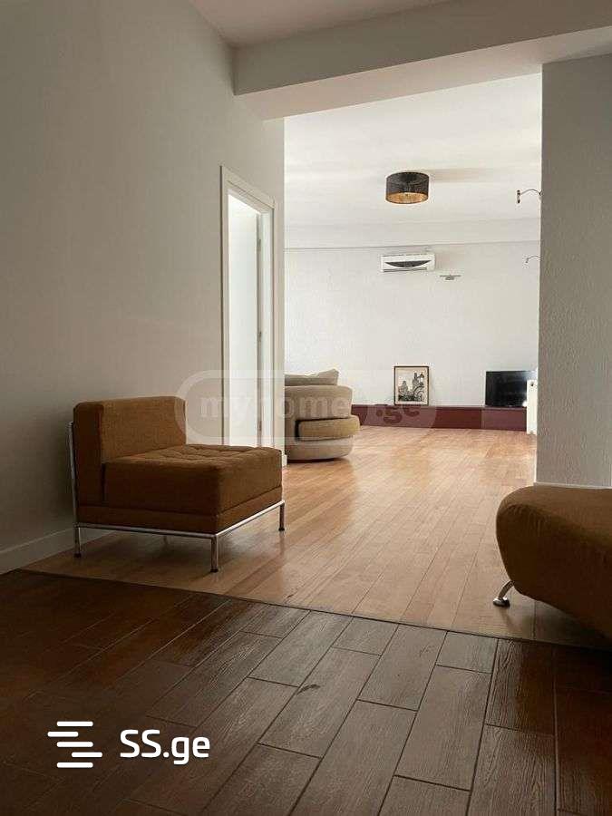 A three-room, newly renovated apartment for rent in Vake, Abashidze 47. The total area of the apartment is 105 sq.m. It has one bathroom, two bedrooms, isolated kitchen and two balconies.