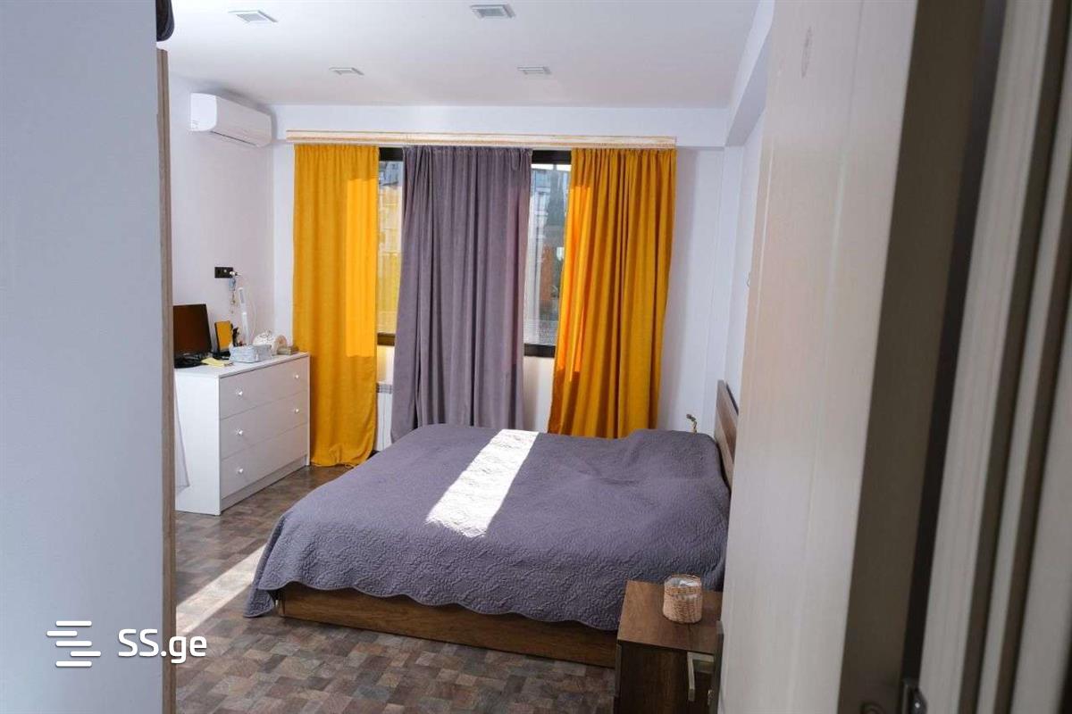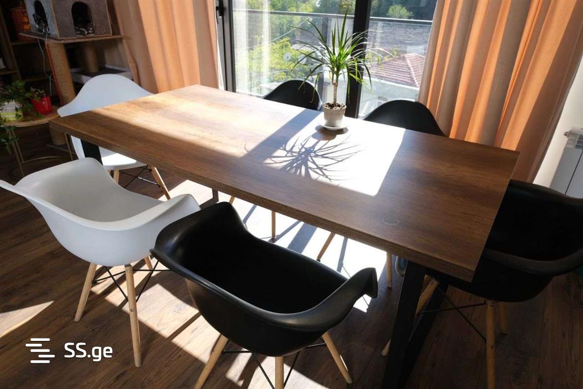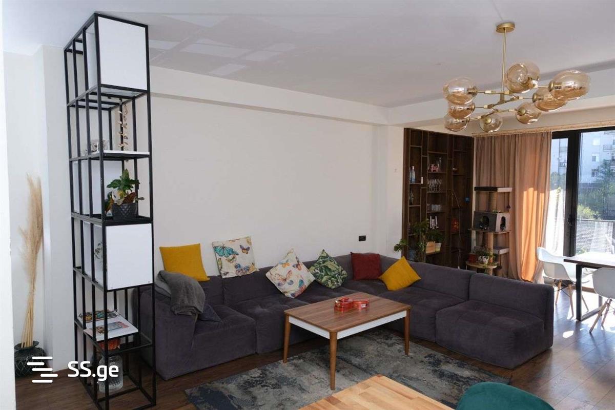 Apartment for rent in Arki Bageb, Tskneti Highway 7, 8th floor of a ten-story building, area 127 sq.m., two bedrooms, large studio living room, three balconies with Kustbi and mountain views, one bathroom. Modern renovation, good quality equipment and furniture.