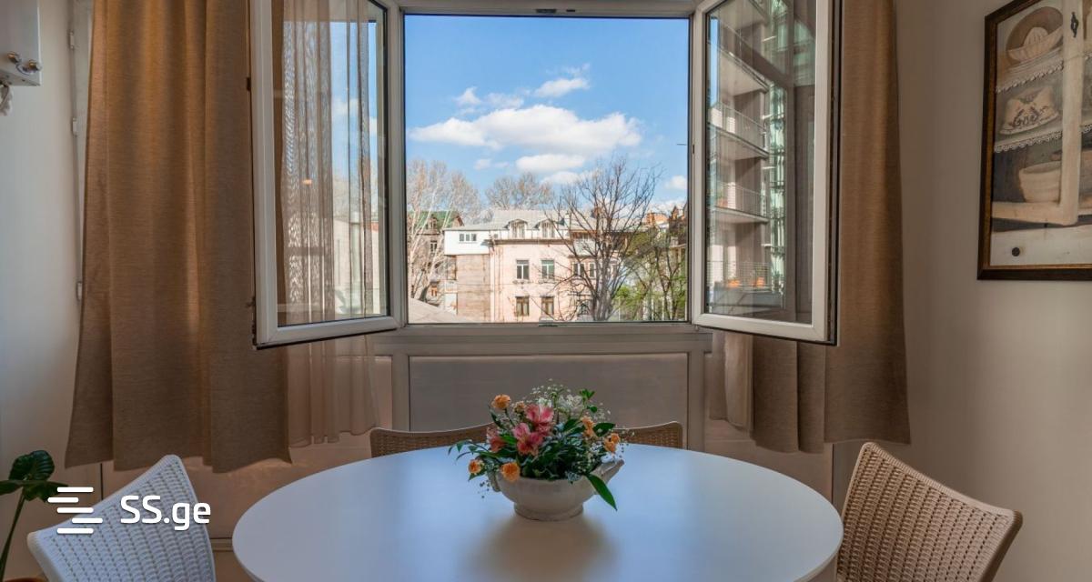 3-room non-standard, high-ceiling apartment for rent in Vake, on Paliashvili street, with all the necessary comforts, interesting design, with a view to the yard