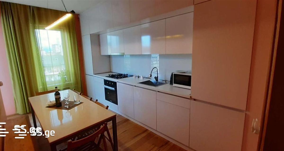 In Vake, 200 meters from Chavchavadze Avenue, Kipshidze St. #7B apartment with views; own closed and protected yards and square; master bedroom with balcony; large bright entrance hall; Fashionable renovation - ecologically clean materials; Floors - beech wood decking, marble, travertine; doors-chestnut; Bathroom/toilets-clay brick.