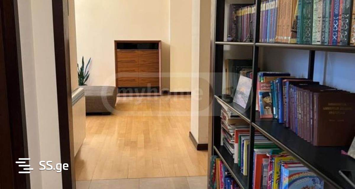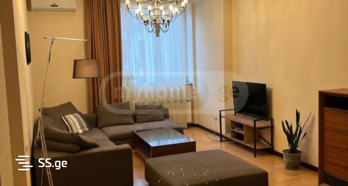 Apartment for rent at 9 Vladimir Gabashvili (formerly 17 Kipshidze). Area 95 square meters, three-room apartment. With two bedrooms, one bathroom and kitchen.