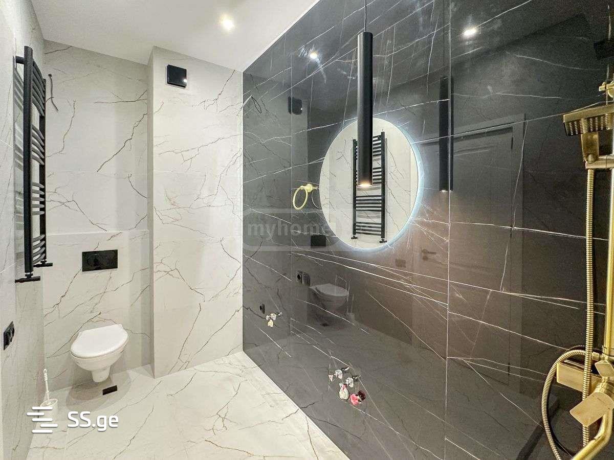 Renovated apartment for sale in Viva development complex, with premium class renovation. The apartment is located on the east side, has two bright bedrooms, a dressing room, a studio-type living room and a balcony. Spanish ceramic granite, Italian sectional and decorative radiators are used. In the complex, a green square and a stadium will be arranged on 1500 sq.m., which will be completed in June 2024. Entrances are equipped with video surveillance cameras and intercoms.