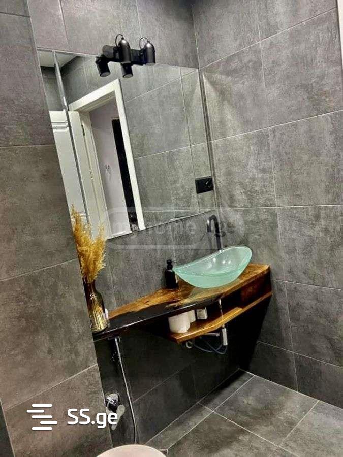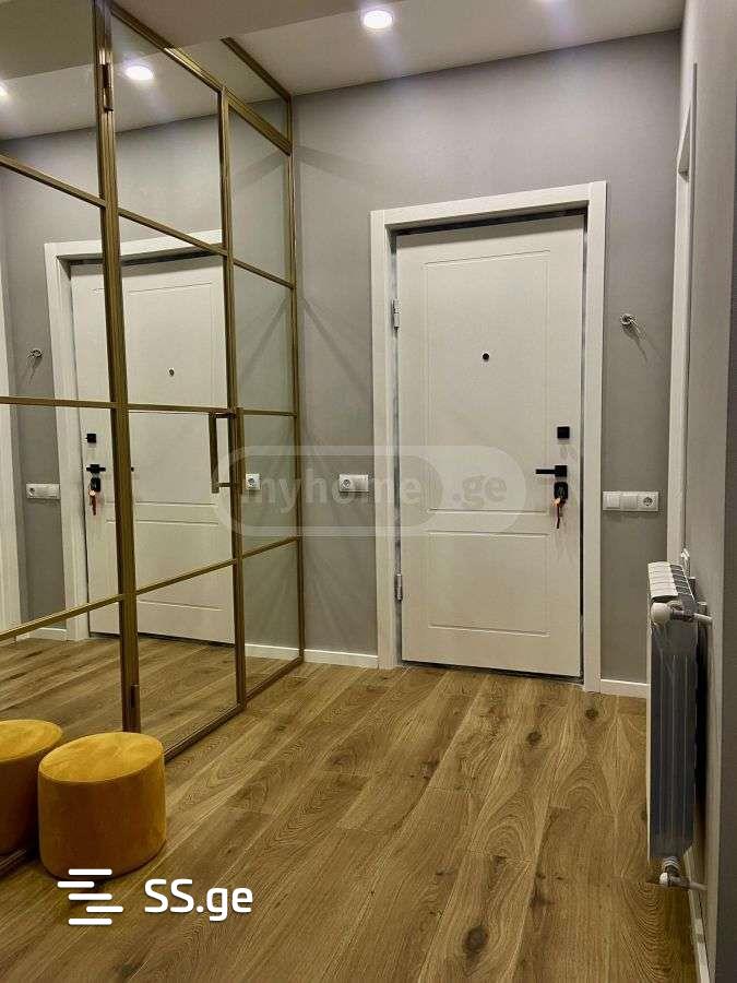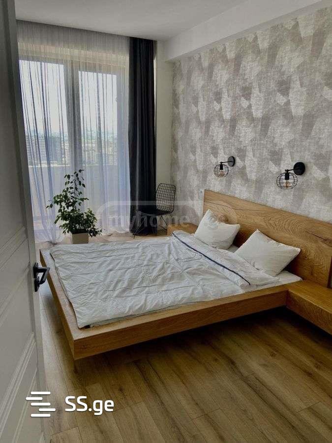 For sale in Didi Dighomi, in the best location, in a newly built, finished, residential building, renovated 3-room bright apartment. With two bedrooms both with primary lighting. With a studio-style living room, furniture and appliances, the house has modern design natural wood furniture, central heating with Italian sectional radiators, modern loft style lighting, a dressing room, separated by a large stained glass window. The apartment has two balconies with a beautiful city view of Tbilisi. There are 2 elevators in the building. There is 24/7 video surveillance in the building. In front of the building there is a public transport stop, a kindergarten, a sports complex with swimming pools and a gym, as well as a football federation stadium.