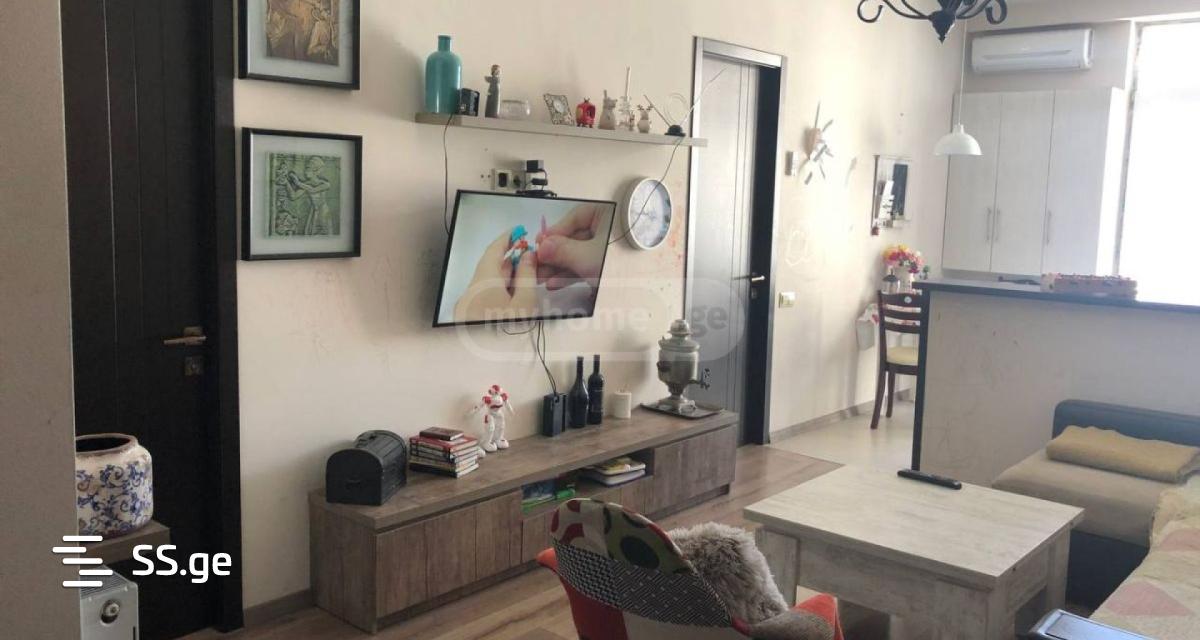 58 sq.m. A bright, cozy, warm apartment, in a newly built building, greened with perennial plants, well-furnished, with a large, private yard with a children's playground, is for sale in Didi Dighom, on Rostevan Street. Direct exit from the location to Agmashenebeli alley and Dighom village. The apartment is equipped with a full set of furniture and household appliances: TV, air conditioner, dishwasher, washing machine and others. PS Everything remains in the apartment except for canvases, some decor items and a vacuum cleaner. closing