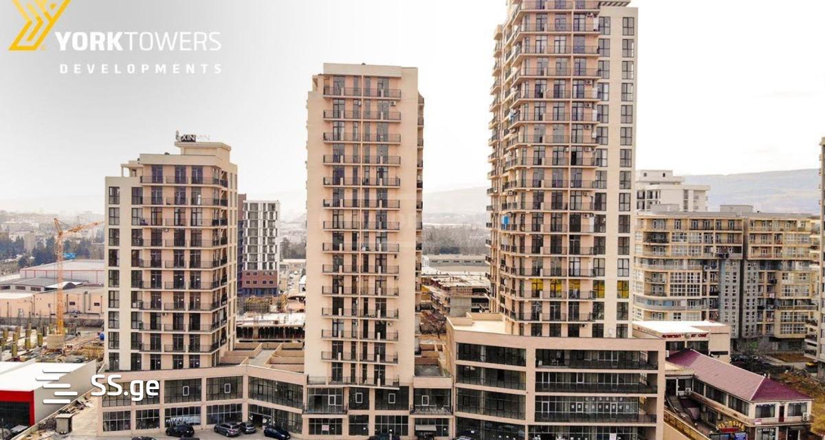 An apartment is for sale on Vepkhistkaosni Street, across from Goodwill, in the highest building of York Towers. The apartment is on the corner, bright and warm. 6 months of residence. Everything remains in the apartment