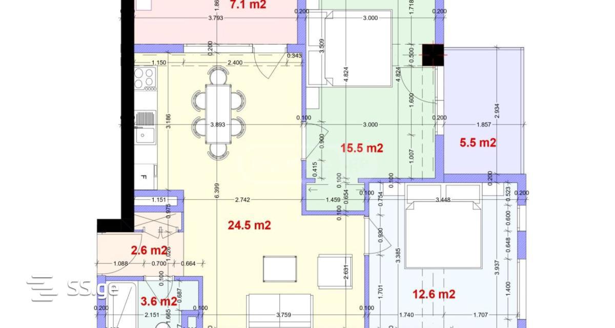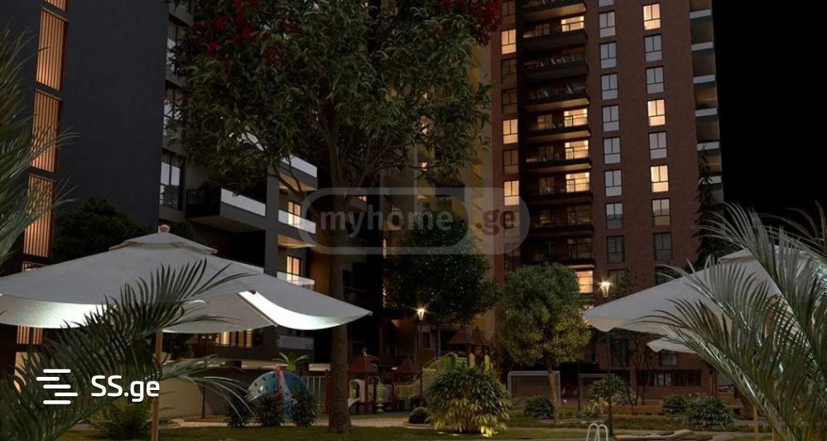A 3-room apartment with a white frame is for sale in the completed building of the Deca Development project "Environment Dighom". In the yard of the residential building there will be football, tennis and basketball courts, as well as an open swimming pool and a 7000 sq.m. green area.