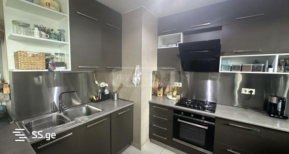 A three-room renovated apartment is for sale, fully furnished with furniture and appliances.