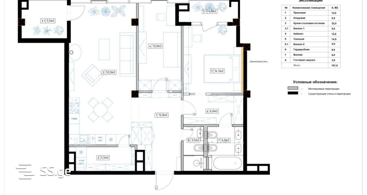 An excellent apartment for sale in the new building of the BLOX company on the 18th floor, with a panoramic view of Kazbegi and underground parking. S=103.27m2. green frame. The apartment is divided into 2 zones: common and private. The private space includes: a bedroom with a cozy balcony, a dressing room and a personal bathroom with a bathtub and a bidet. The common area includes a wide hallway with comfortable built-in wardrobes, a bathroom with a shower, an office or a children's room, a large fireplace room with a kitchen, a spacious storage room with a washing machine and a drying cabinet, as well as a balcony with a barbecue area and a beautiful view. The kitchen includes a fridge, built-in oven and microwave, dishwasher, cooker and waste disposal. Dighom Park is within walking distance, where you can comfortably spend time and walk with your pet. The house is for rent in June 2024. The project is agreed with the developer. Price with underground parking $125,000. An architectural project for you, as a gift!