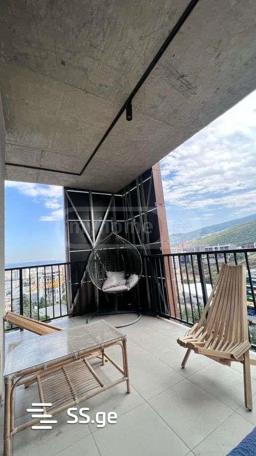 Furniture and appliances remain in the apartment... Three-room corner apartment in Arki Saburtalo! The apartment is on the 13th floor of a newly built 22-storey building. It has beautiful panoramic views, a 30 square meter terrace, a special interior and a smart heating system. The building is served by 24-hour security and video monitoring.