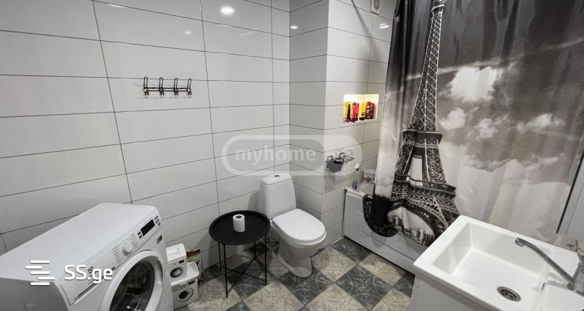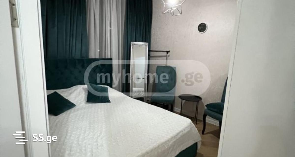 A 3-room 68.3 sq/m apartment, furnished and equipped, with a built-in dishwasher, is for sale in Mindeli, No. 12, Block I, Dona Palace. The building is equipped with 2 freight and 2 passenger elevators.