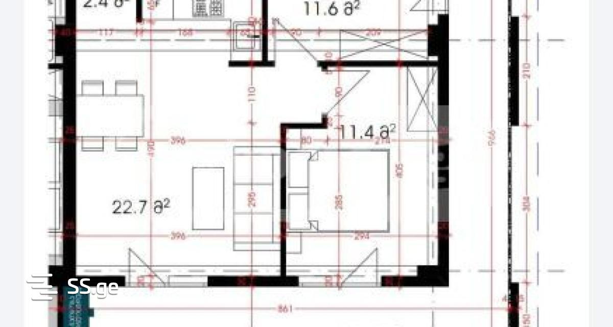 ბინა არის არქის, მეტროსთან 2 წუთის სავალზე, კარფურის თავზე. აქვს კუთხის აივანი ორივე საძინებლიდან იზოლირებული გასასვლელით და მისაღებიდან გასასვლელით.