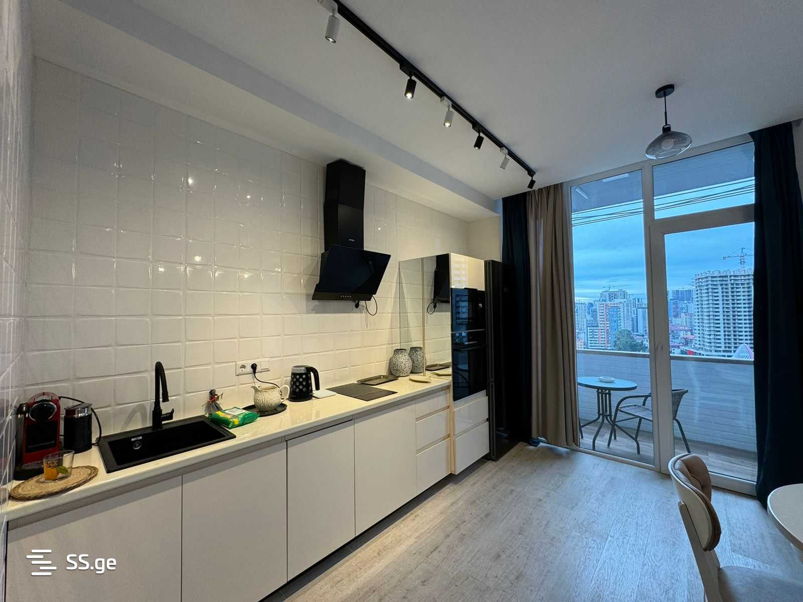 Newly renovated 95 sq.m. 3-room apartment with 2 separate bright bedrooms on the 15th floor in a newly built 20-storey building on Tbel Abuseridze Street.
