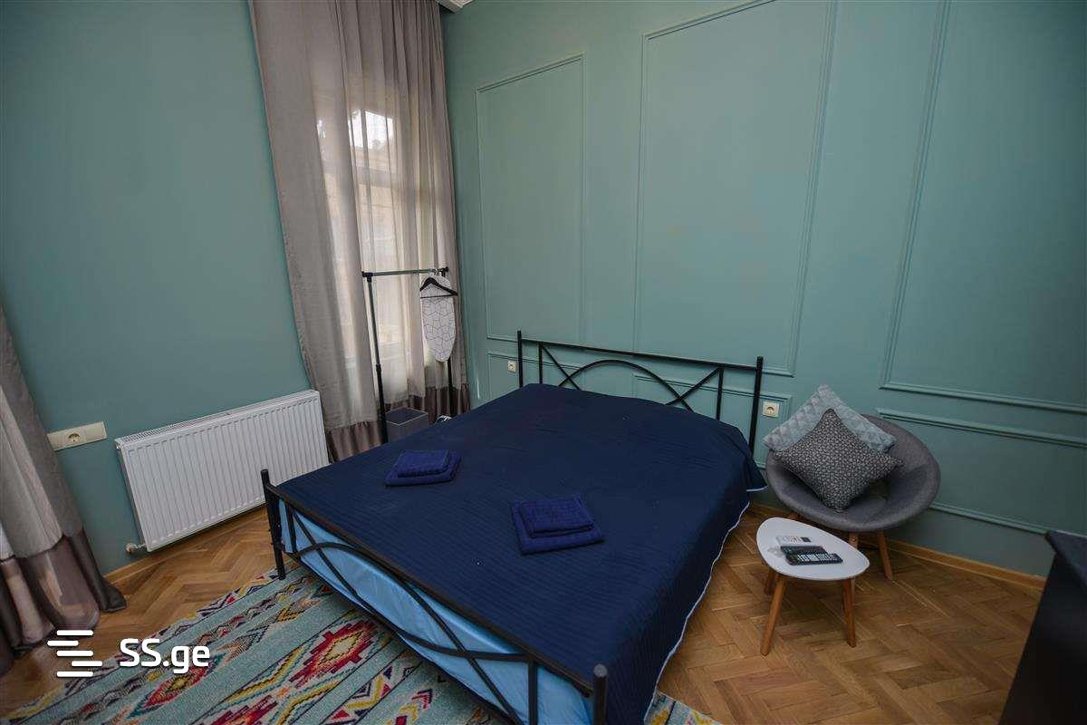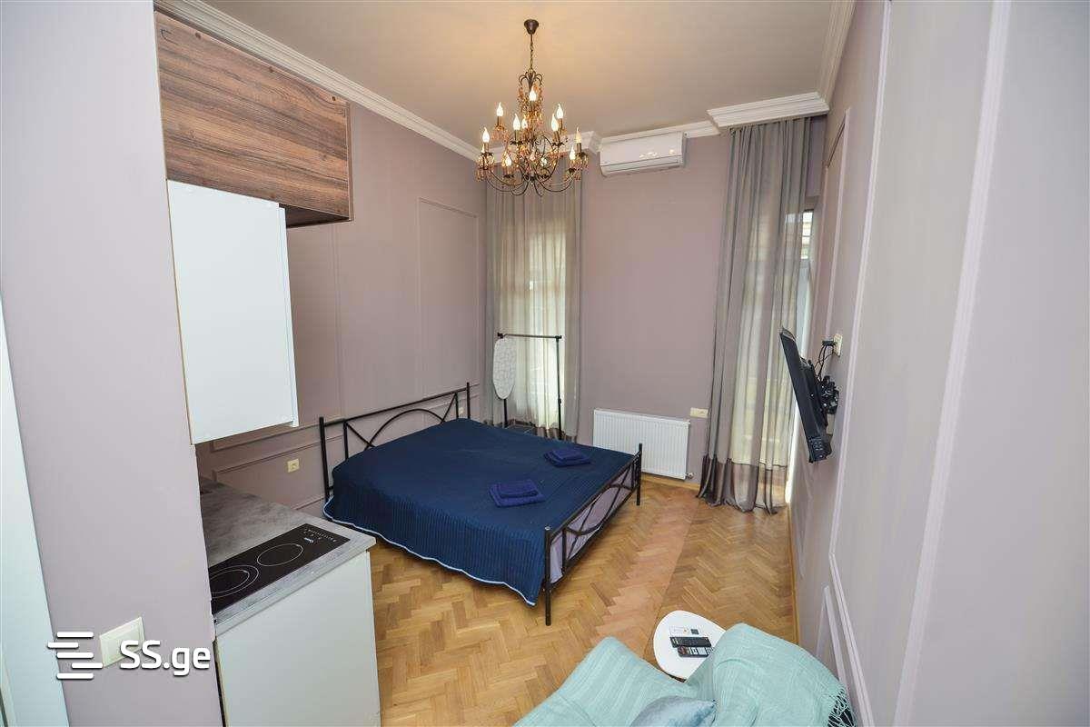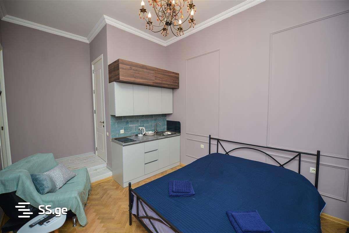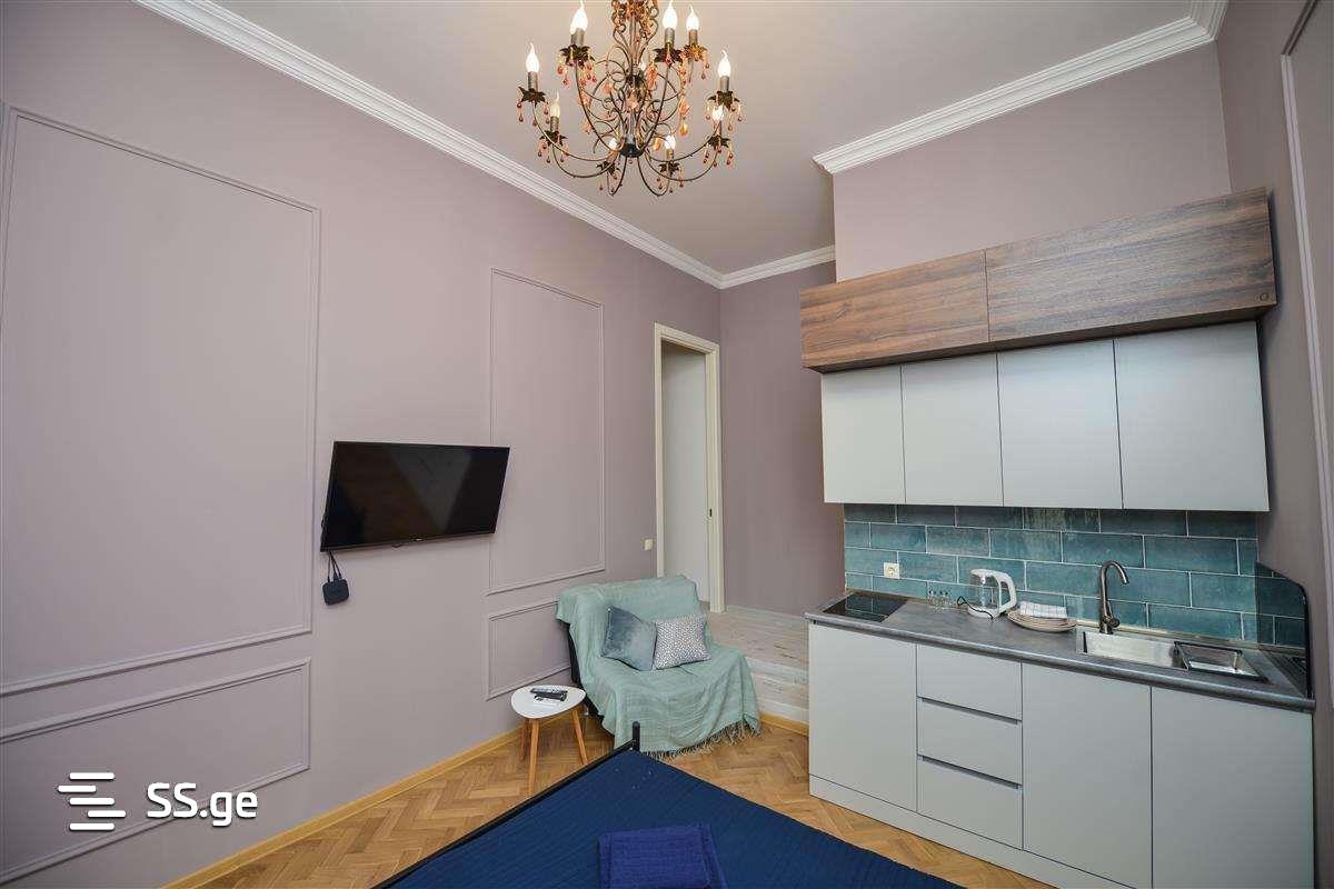 3 studio apartments for sale, each with its own kitchen and bathroom. With central heating (boiler), newly renovated, with furniture and appliances. The apartment is located near Rustaveli and is permanently rented to tourists.