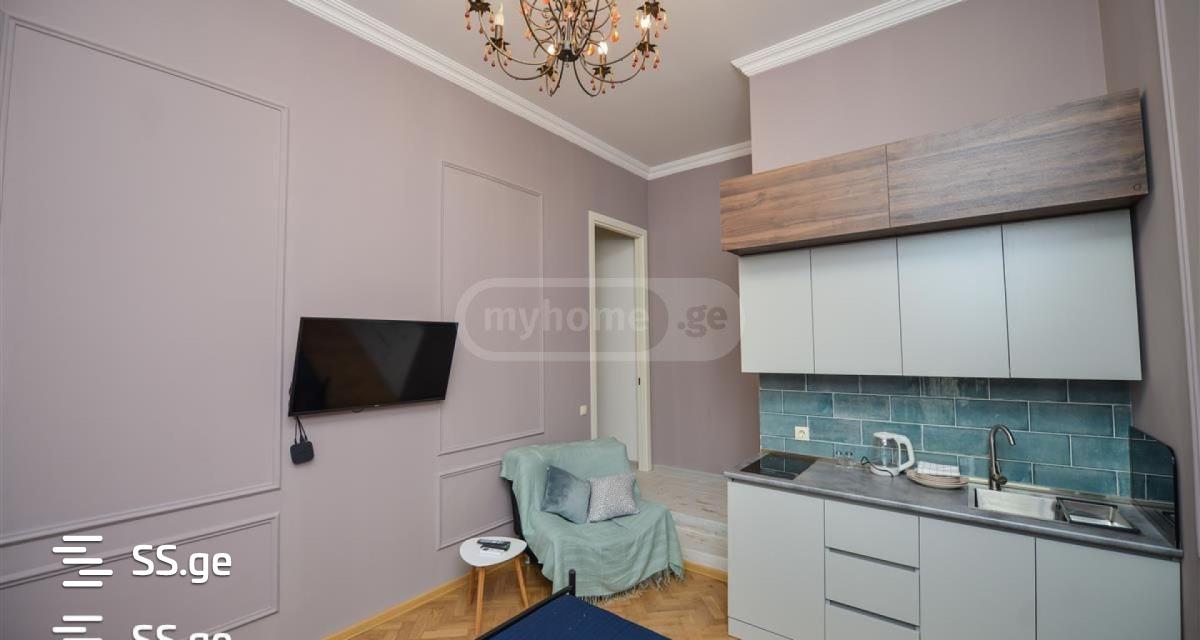 3 studio apartments for sale, each with its own kitchen and bathroom. With central heating (boiler), newly renovated, with furniture and appliances. The apartment is located near Rustaveli and is permanently rented to tourists