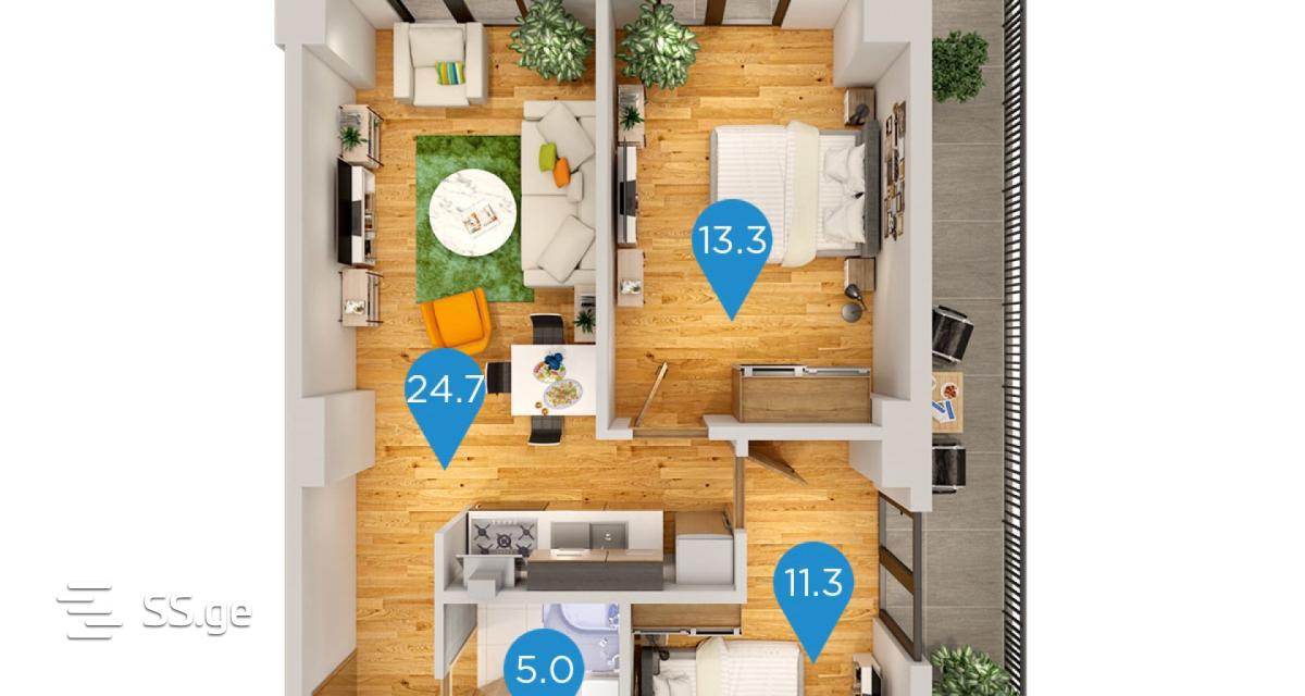 Price range $1245 - $1300 Arkhi Kikvidze garden is the first construction in A- Nadzaladevi district. The complex has 24 floors, where 346 apartments are located, it also includes commercial spaces. The project is being built with the highest quality construction materials. Stability and strength of the building is the most important component of the construction, so the company uses reinforced concrete of Heidelberg cement. To reduce utility costs, a German-made Itong block is used, which is energy efficient and will use 40% less energy to cool and heat the building. 2 fire and 2 standard elevators will be installed in the project. Also, there will be an open and closed parking lot that will accommodate 145 cars. HPL panels are used to cover the residential complex. In the complex you will find: · Water reservoir · Stadium · Parking · Playground · Square · Kindergarten