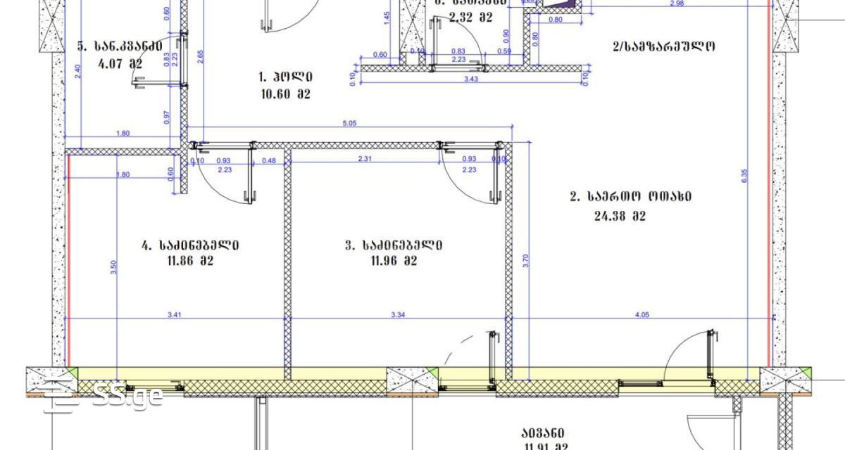 3-room apartment of 82 sq.m. for sale. M. (residential area 70 sq.m.) Apartment with a white frame, on the 9th floor of a 10-story finished building, m³ in the Saburtalo complex. Location: in the central part of Tbilisi, on an 11.5-hectare plot of land between Gelovani Avenue and Bakradze Street, on the right bank of Mtkvari, 900 meters from the Vefkhi and Mokmi monument. The main attraction of the m3 district will be the central park, with a boulevard and bicycle path arranged around it. Sports fields, recreation and entertainment spaces, picnic and 'barbecue' areas will be located on the territory of the park. The area, together with the residential area, includes educational, sports and entertainment infrastructure, including restaurants, cafes, salons, shops, indoor swimming pool, fitness center, school and kindergarten, guest reception and common work spaces. The construction is completed, it will be possible to start the repair works from the end of November.