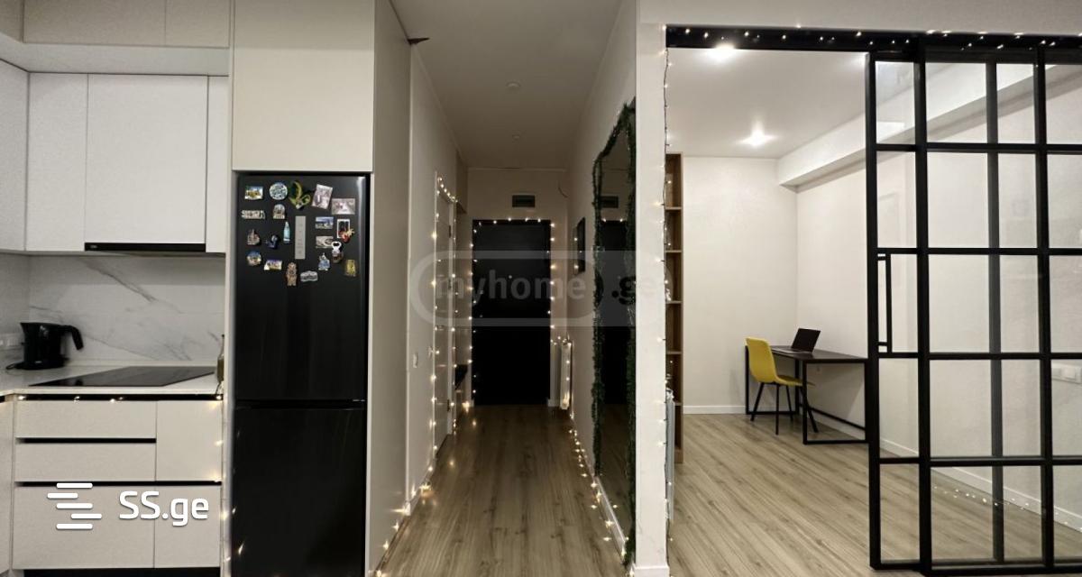 A 3-room apartment with furniture and built-in appliances is for sale. A newly renovated park is located below with beautiful views. The apartment has a large parking space. The highest quality repair materials, equipment, wiring and furniture are used.