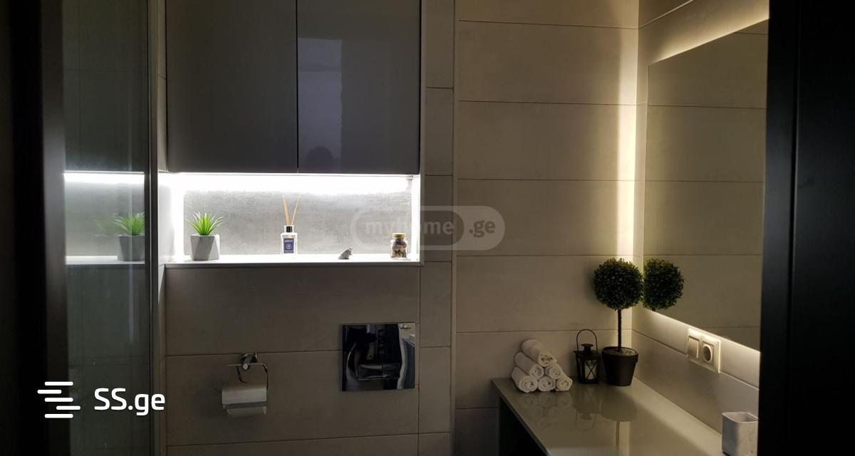 The apartment has two balconies, two bathrooms, two bedrooms, one of the bedrooms has a bathroom and a wardrobe. The building has its own yard, is equipped with cameras and has a cleaner.