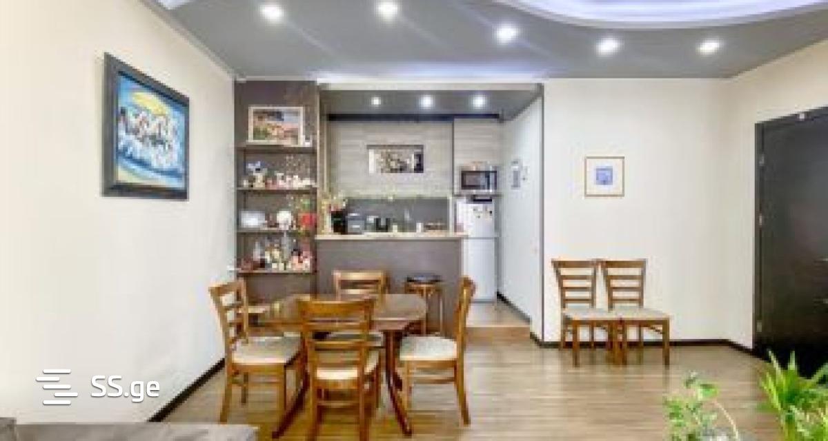 Three-room, newly renovated apartment for sale, Politkovskaya 41, with built-in furniture and appliances. The building has a common parking space surrounded by a barrier. Sports fields, a children's square and a garden are located near the yard.
