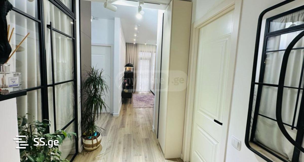 An apartment is for sale in a premium class building built by Demax, with high-quality renovations, expensive furniture and appliances, and a dressing room. The designer took care of the interior, all the points are utilized in the available space, the apartment is very comfortable and beautiful. For details, contact me at 577181905 Natia