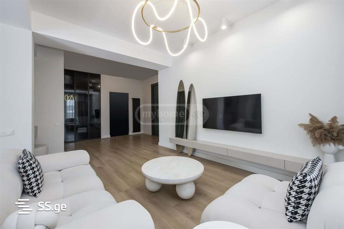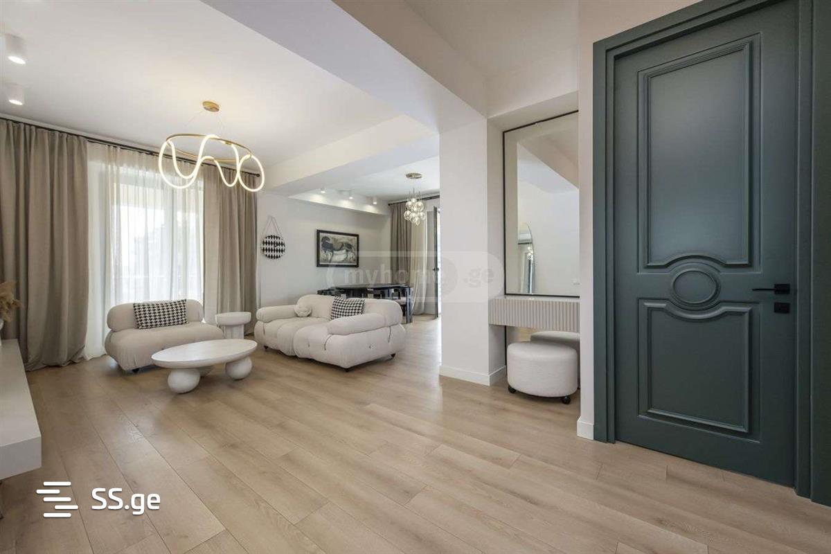 For sale in Vake, in the most desirable ecologically clean environment, in the heart of Mziuri Park, a beautiful apartment made in premium quality modernist style. The total area of the apartment is 123 square meters, with a beautiful summer area/veranda on 2 sides, one of which overlooks Mziuri Park, and the other overlooks Chavchavadze Avenue and Mtatsminda. Renovation works are done with the highest quality materials, American system electrical wiring, the bathroom is equipped with the highest quality faucets, Corian towels. All internal doors are of non-standard height, made in high quality, as for the furniture, motif and interiorism furniture and accessories create a special coziness in the interior. The house is hidden in greenery, peace and at the same time you are 2 minutes away from Mziuri on Chavchavadze Street. The complex is built according to world standards, observing all safety measures, a well-furnished closed yard, the complex has a swimming pool, a gym, 4 levels of parking, 24-hour security.