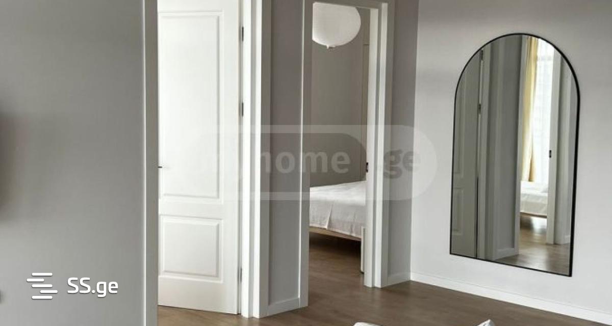 A bright house with the latest renovation in a newly built building on Titsian Tabidze Street in Vake. 105 m2. The apartment has all kinds of appliances and furniture. With beautiful views.