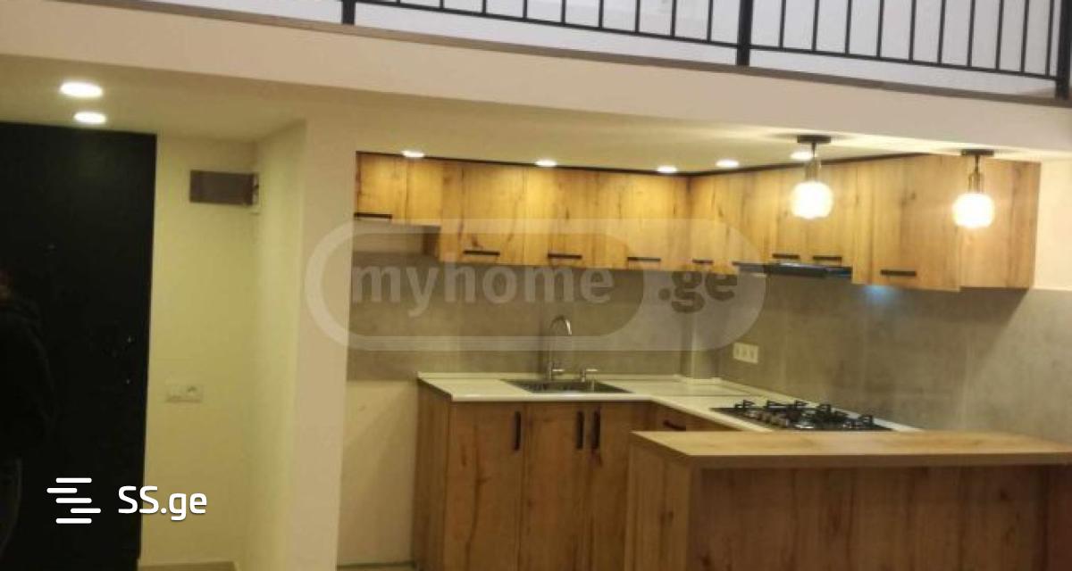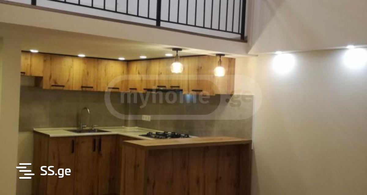 3-room apartment of 53 sq.m. mezzanine for sale. Ceiling 4m, mezzanine height 1.70m, renovated, uninhabited, with gas and electricity subscription, reception studio, bedroom and mezzanine. Built-in wardrobes, kitchen furniture, Kavlashvili building. in Varketili, 3 stops from the metro. on the central road. on Kupradze,