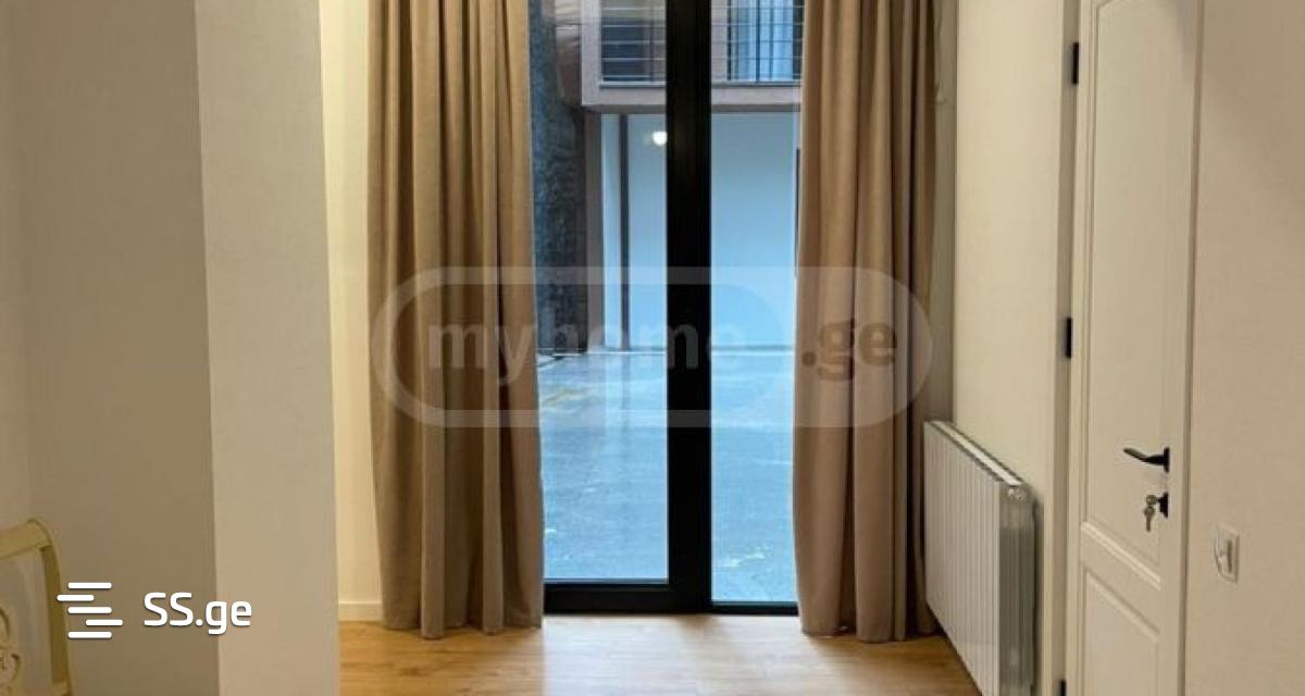 3-room uninhabited studio apartment for sale, with 2 bedrooms (one of them with a dressing room), 2 bathrooms, new appliances and furniture. The apartment has an exit to the inner yard, where there is an outdoor seating area with a shade. The apartment can also be used as an office.