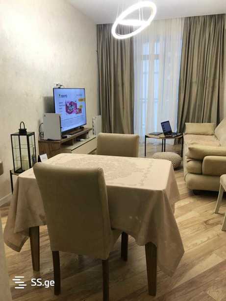 New building, there is a Carrefour in the building, with a secured entrance. In front of the house, there is a bus stop, 7 minutes away from the University and Vaja-Pshavela metro station. Newly renovated, with new furniture, the apartment has central heating, air conditioning, refrigerator, television, washing machine. There is a large balcony. A supermarket Ori Nabiji is nearby, 10 minutes away from City Mall, Agrohbi.