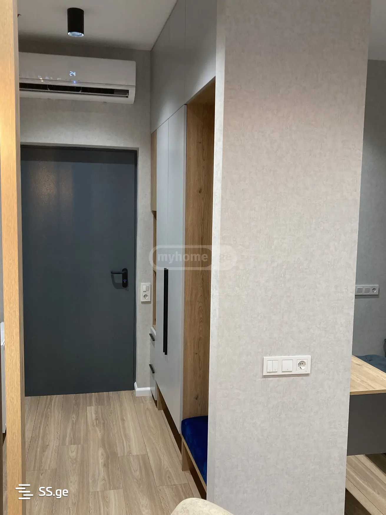 A newly renovated apartment is for rent in the best location on Kavtaradze street. There is a Carrefour supermarket located below the building, a bus stop in front of the building, and the metro station is a 10-minute walk to the State University.