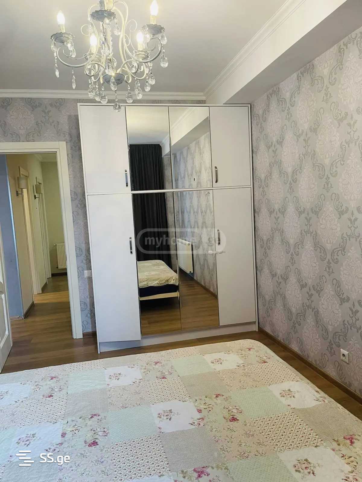 A 3-room apartment is for rent in a newly built building. It has 2 separate bedrooms, a separate kitchen, and a separate living room. 2 bathrooms. Fully furnished and equipped with appliances. With a clothes dryer. With underground parking. 2 balconies. It is rented for a minimum of 1 year based on a contract. With 2 months' advance payment.