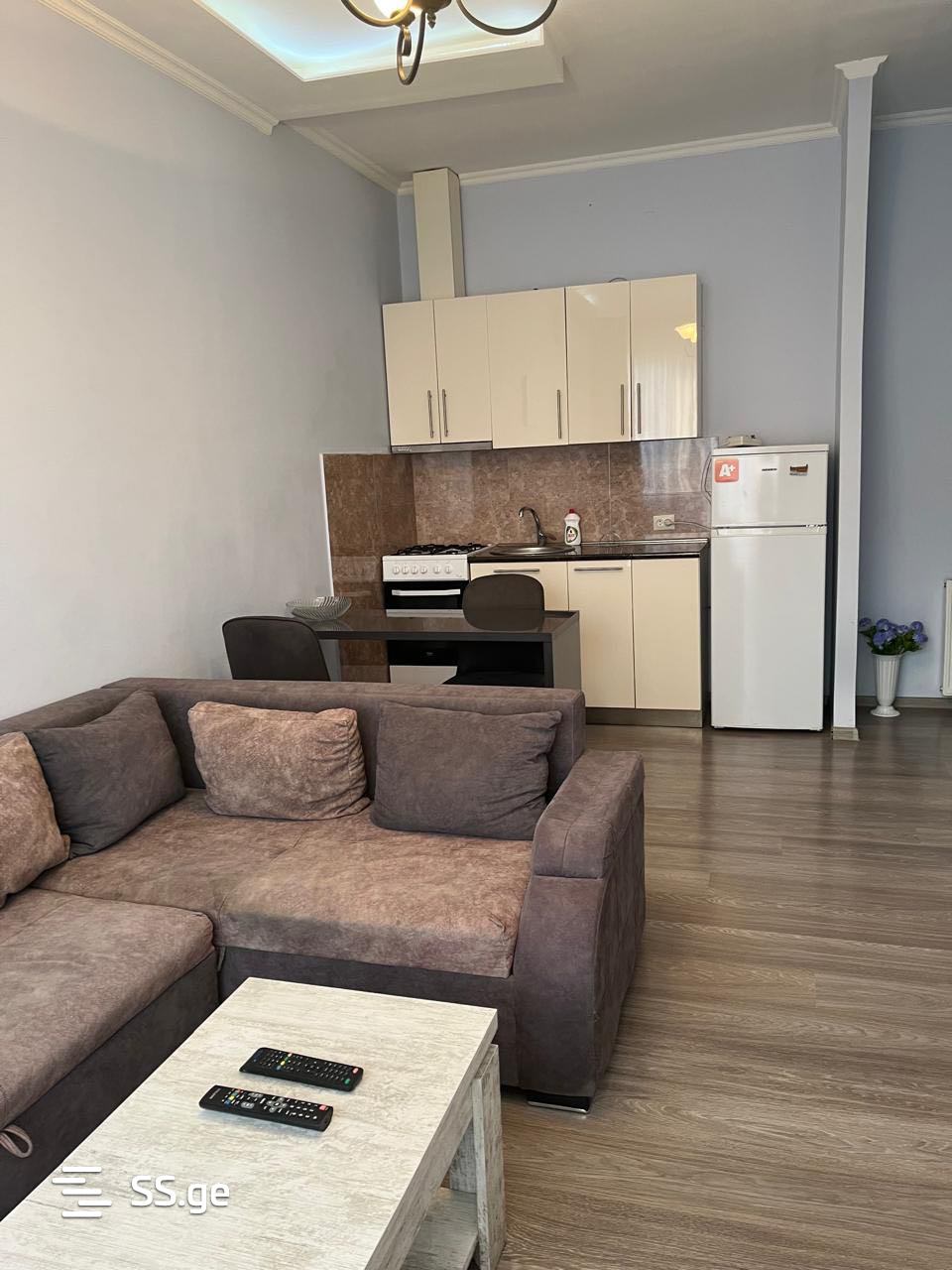 100 meters from the Polytechnic metro. Bakhtrioni 11. 16th floor. Two elevators. Parking in the yard. There is Carrefour, Nikora, Spar nearby, 2 steps, pharmacies, cafes, and grocery stores.