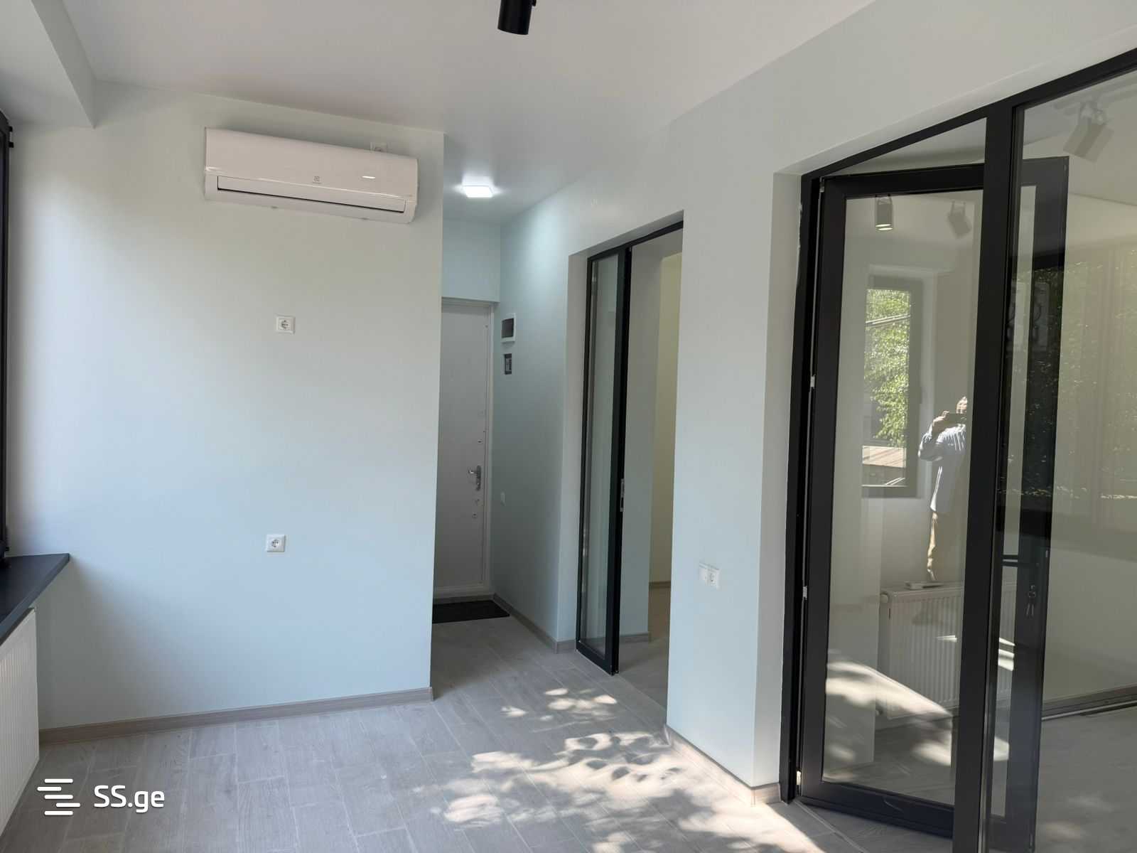 Office space for rent. Studio-type living room and two rooms. One bathroom. One bathroom. Very convenient location. Two entrances from Chavchavadze and Takaishvili.