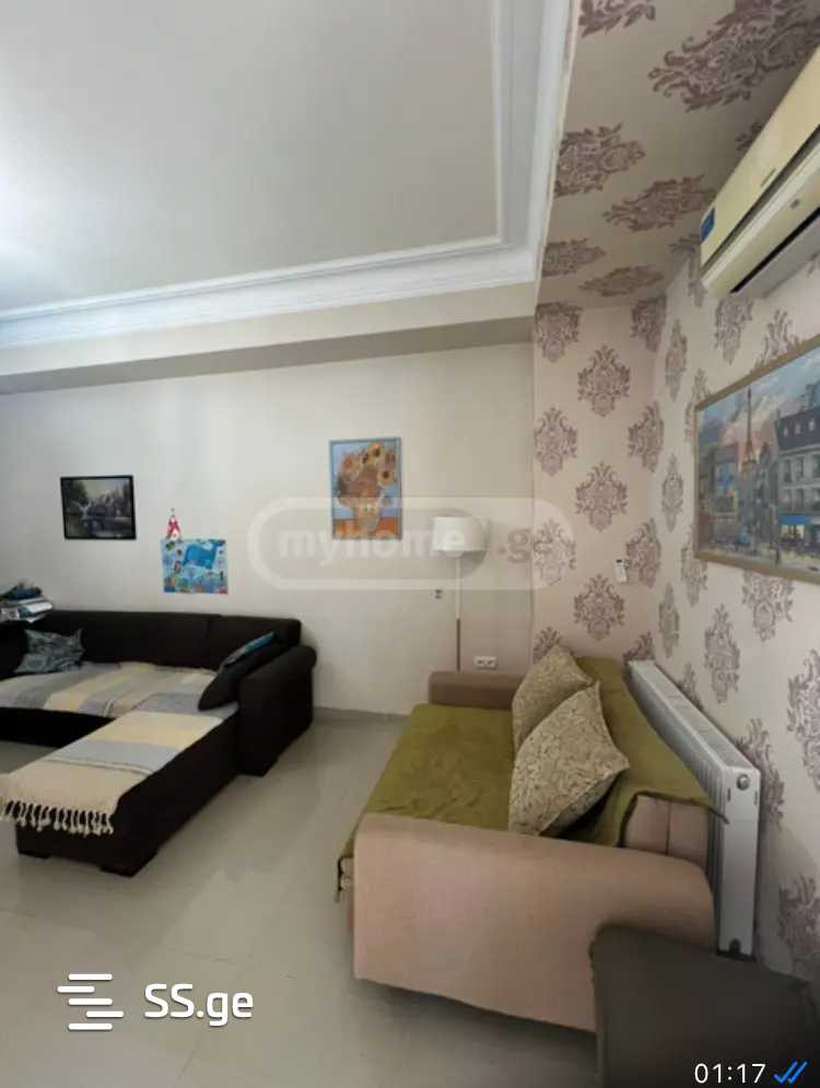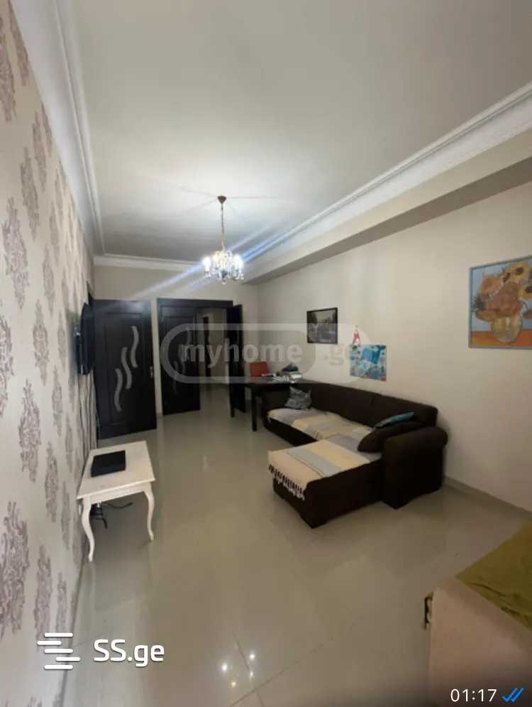 For rent, a 65 sq. m. apartment at 83 Chavchavadze, near the University of Business and Technologies, the apartment has 1 isolated bedroom, a separate kitchen, a living room, and all necessary furniture and appliances.
