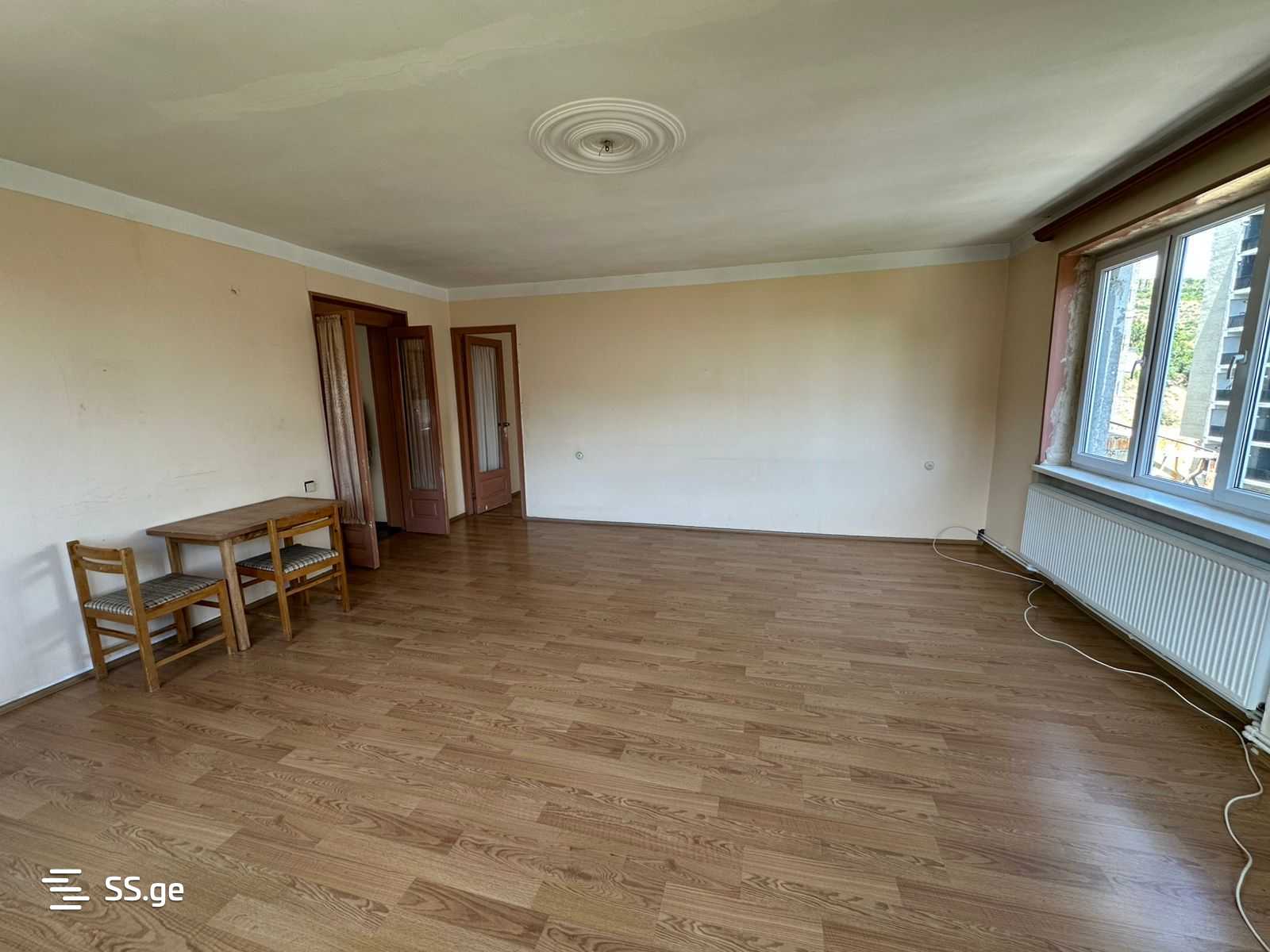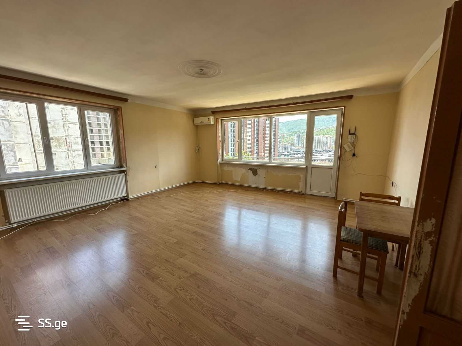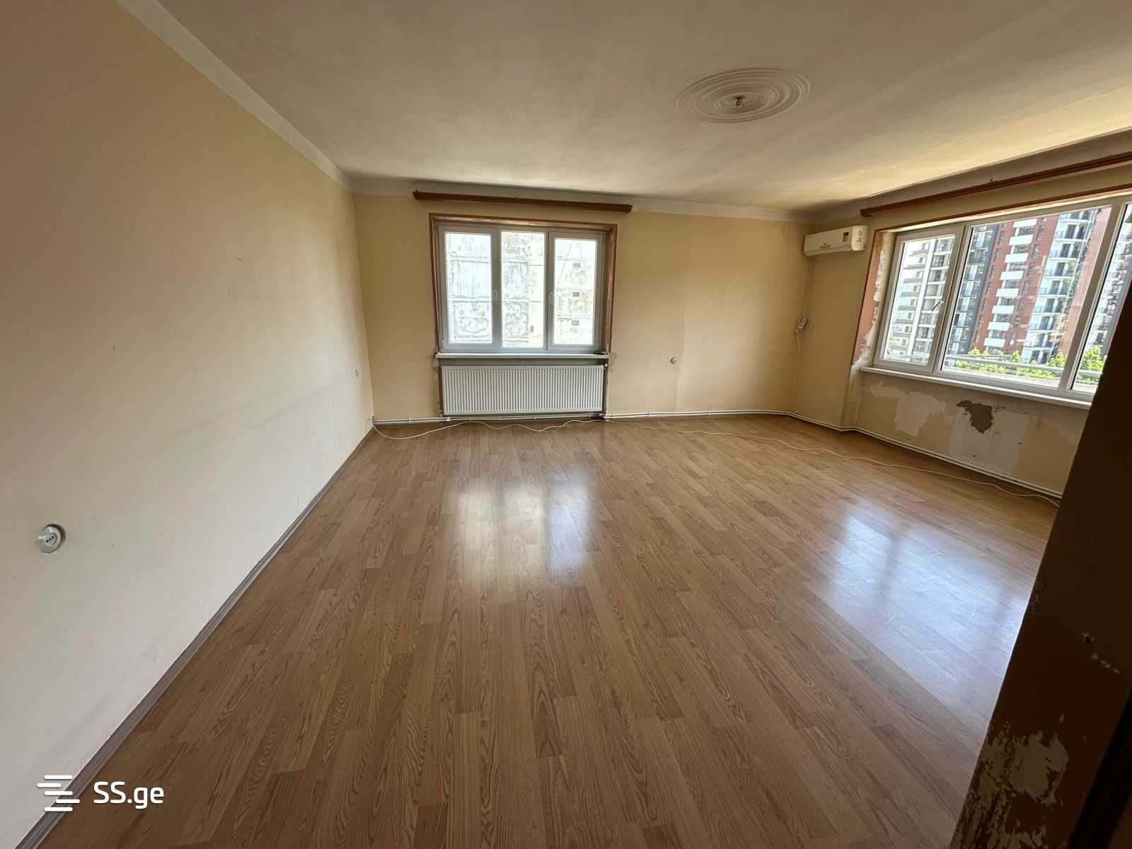 Urgent! 85 sq.m 3-room apartment for rent in Saburtalo, near the State University metro station, at the beginning of Mindeli Street, next to Rustavi 2. The apartment is rented without furniture, has 2 bedrooms, a separated kitchen, in clean condition with old renovation, with central heating, air conditioning, 2 balconies, and good views. 7/9 floors. Payment in advance for the first and last month