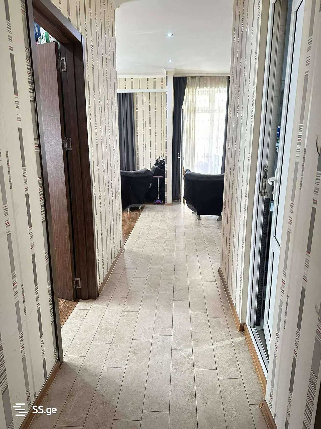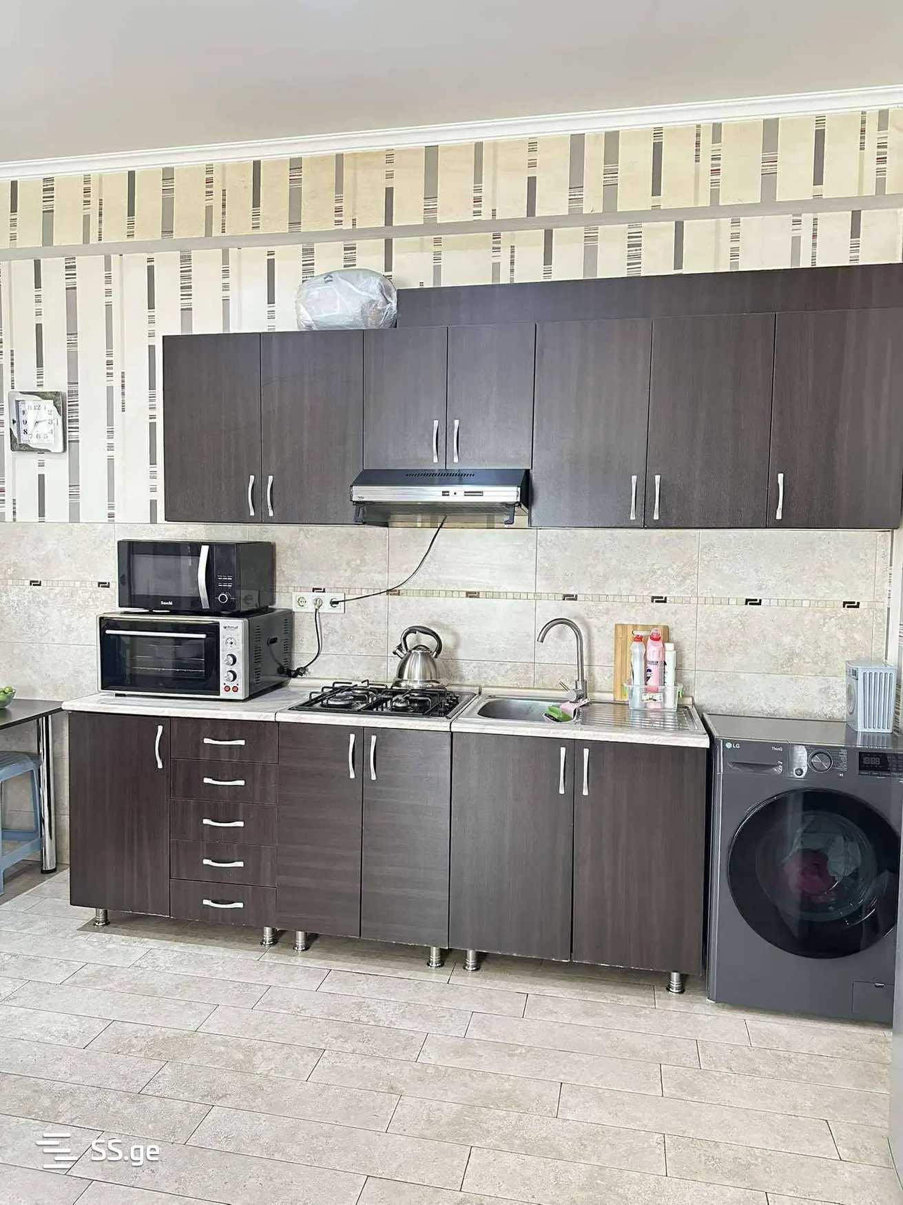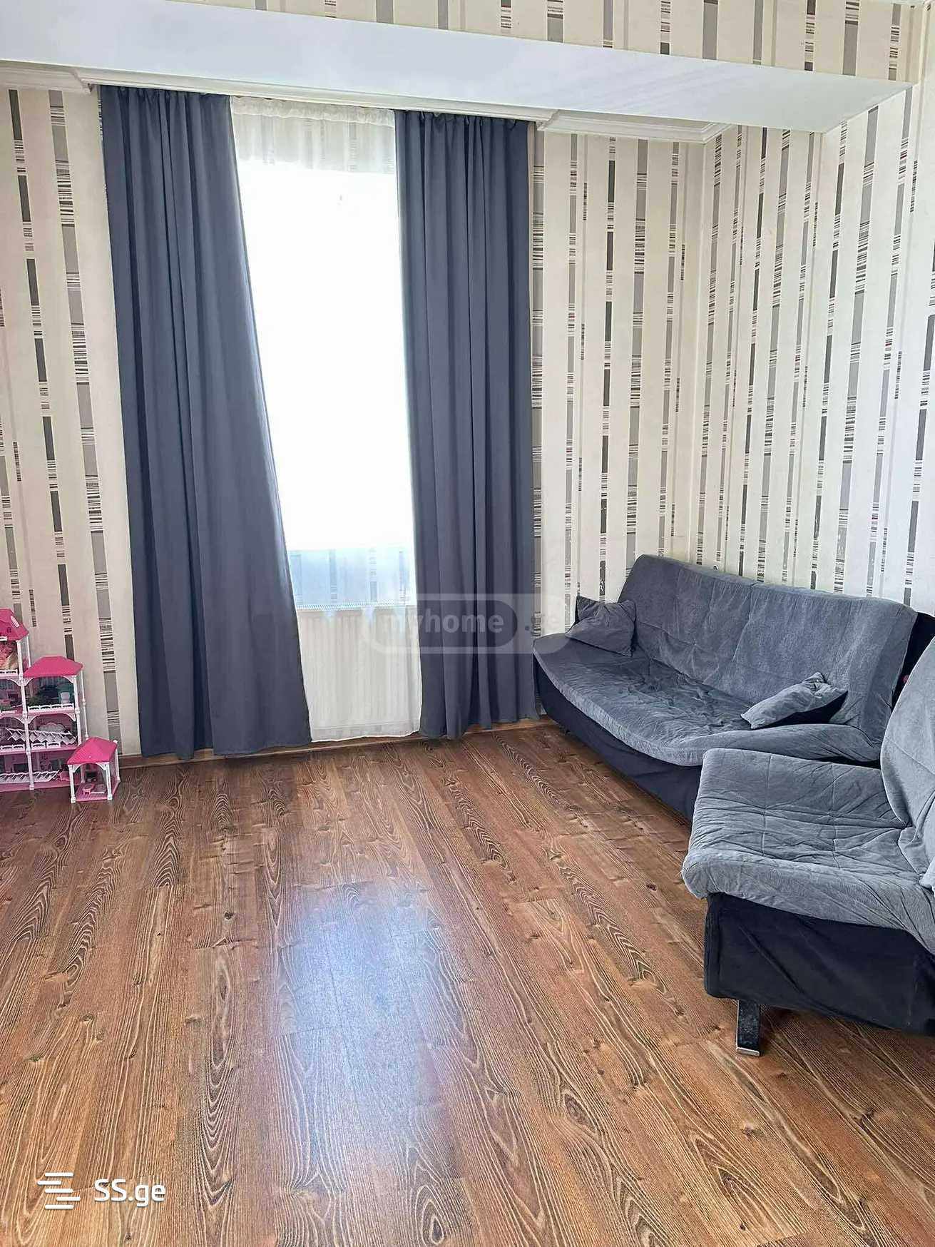 In Gldani, behind the theater by Sarajishvili metro, in front of the swimming pool. On the second floor, a bright corner two-room apartment. With two balconies, one bedroom. It has central heating, it is a very clean, polished house. With an advance payment of two months.