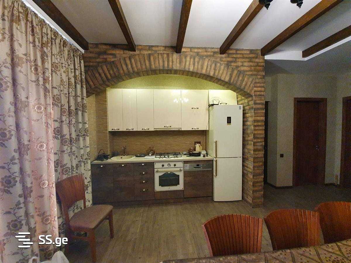 For rent: a 3-room, premium quality apartment in Vake-Saburtalo, on O. Lortqifana Street. The apartment is bright, airy, with a large open and glazed balcony.