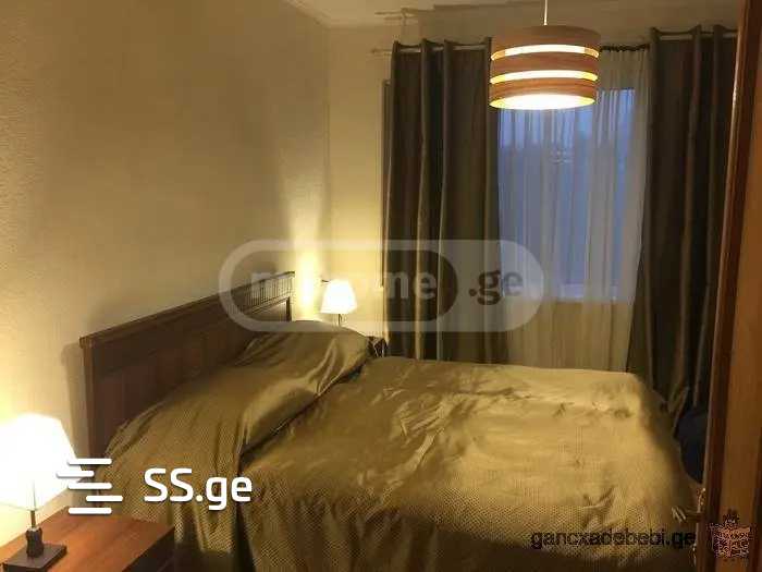 A well-furnished apartment is for rent in a strategic location, near Isani Metro (a 3-minute drive), next to Carrefour, next to the military hospital. The apartment has 2 bedrooms, a fully equipped kitchen, 2 bathrooms, and a large living room.