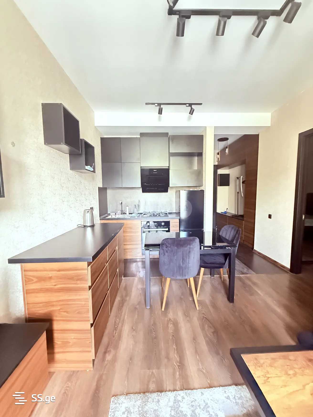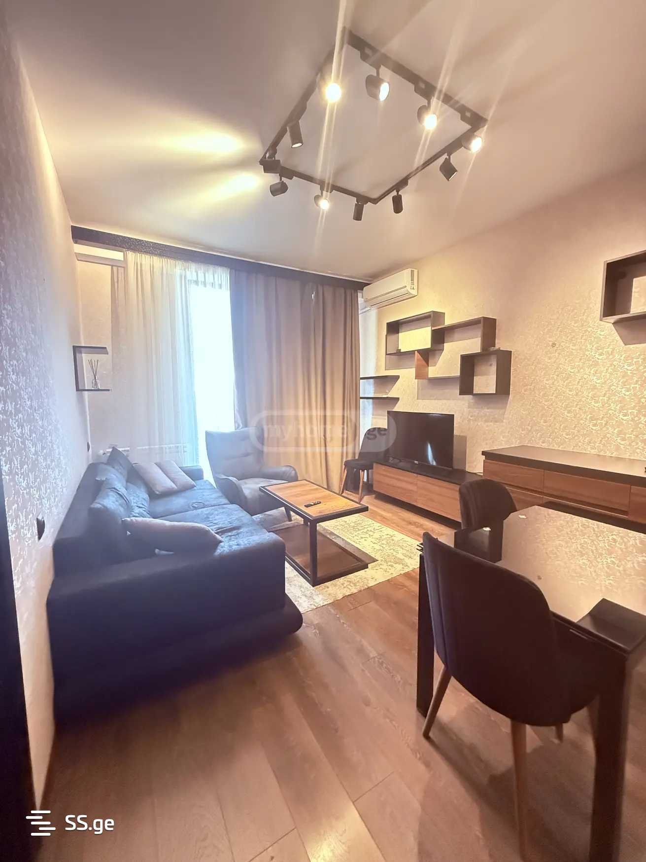For rent, a 2-room apartment in a newly built, well-furnished building on Shatberashvili St. Furnished, with all kinds of appliances. The building has security service. Two months of advance payment.