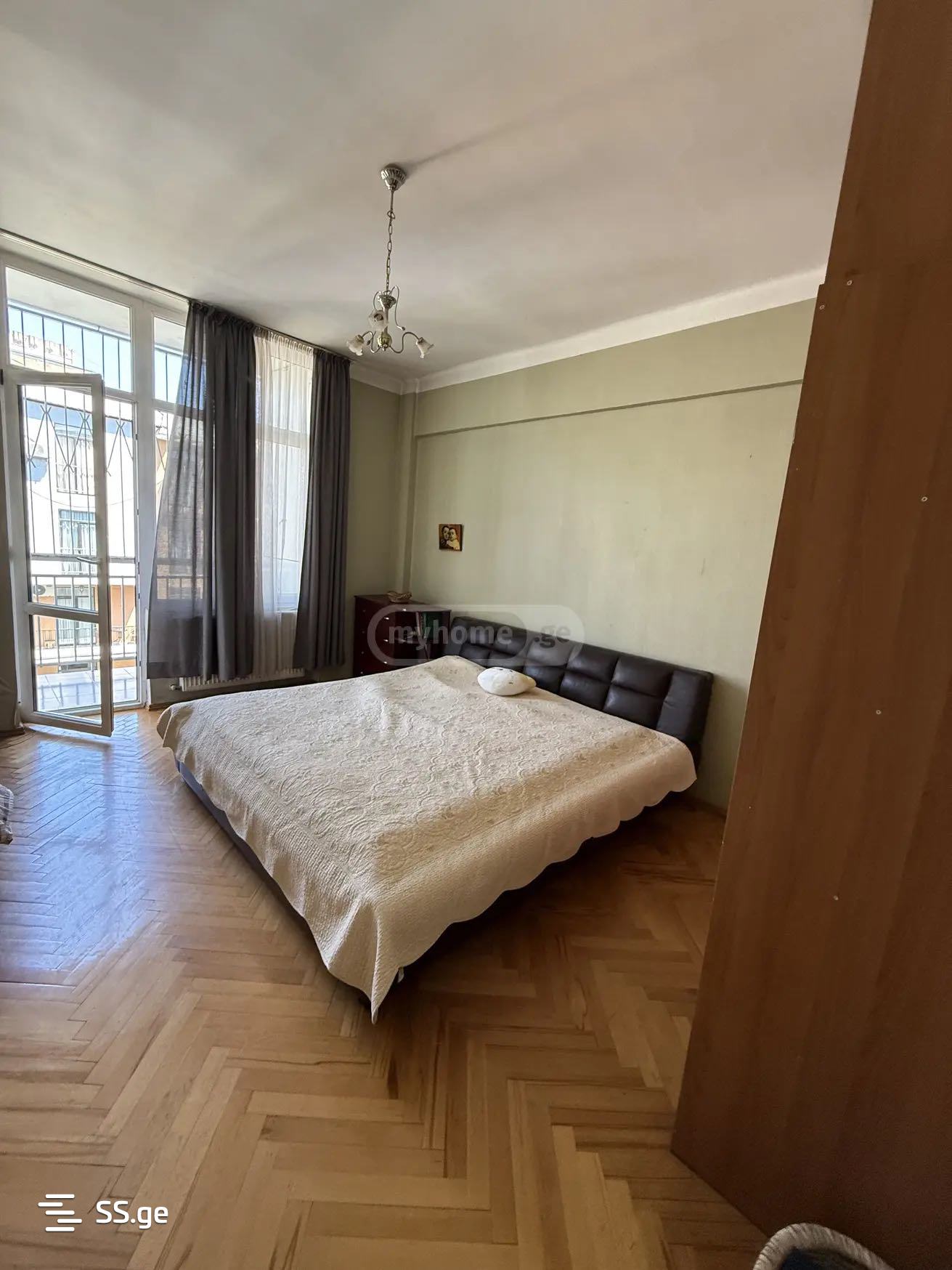 Apartment for rent on the 10th floor on S. Chikovani Street in Saburtalo, 100 sq/m. The apartment is bright, with one large and one small bedroom. The apartment has central heating and all necessary appliances. The apartment is located near the first building of GEP. There are all necessary household locations near the building: pharmacy, grocery stores.