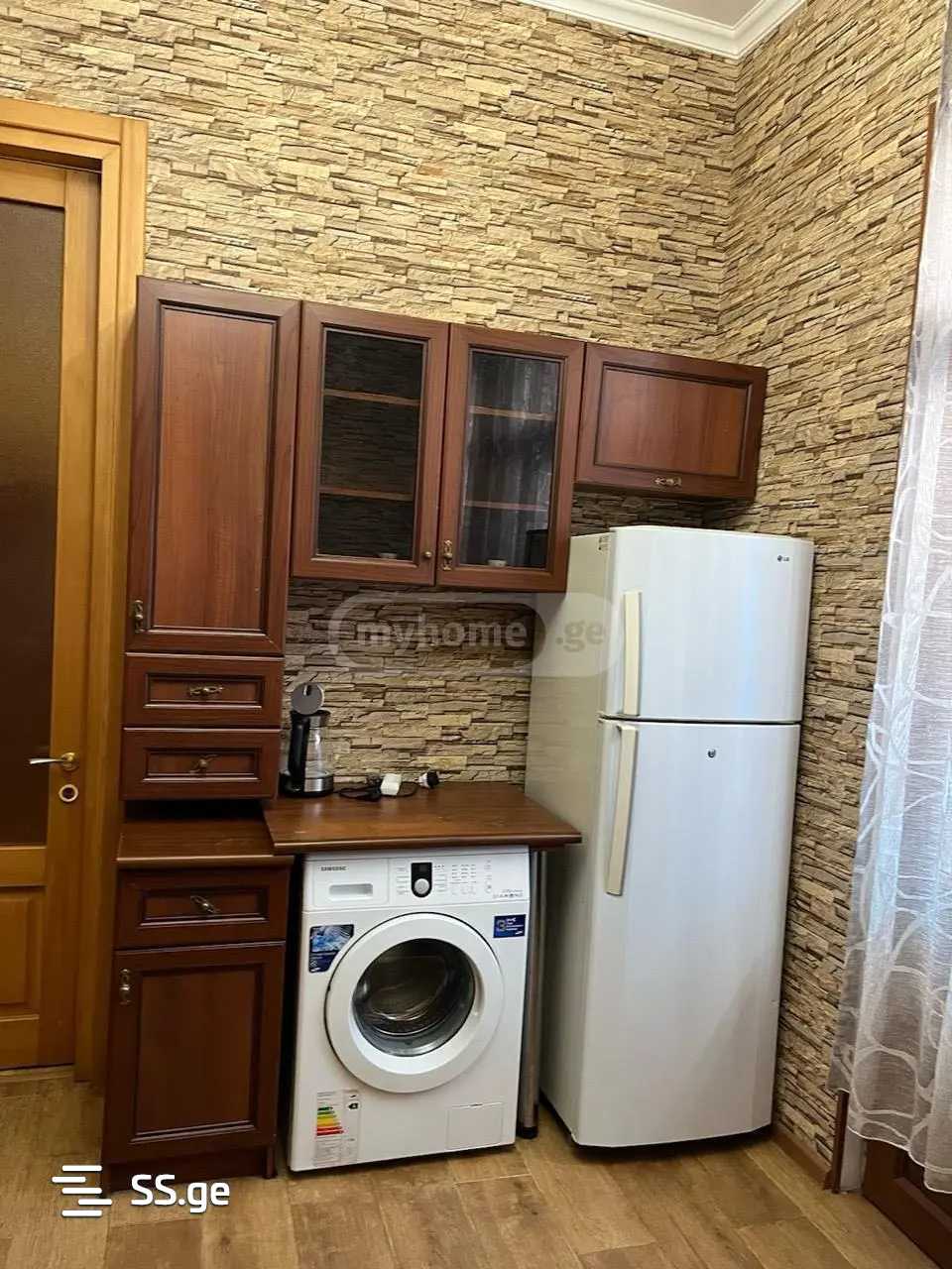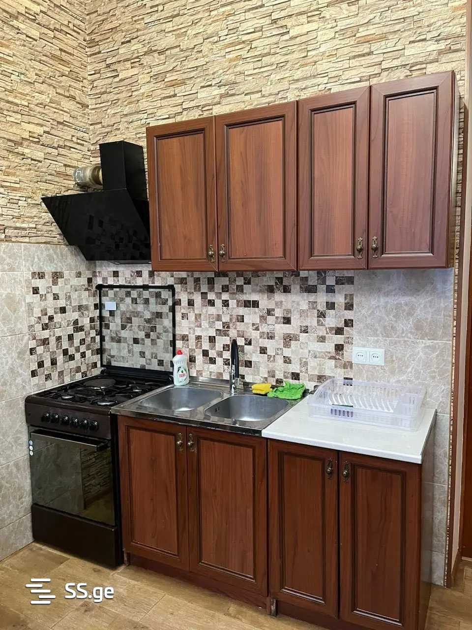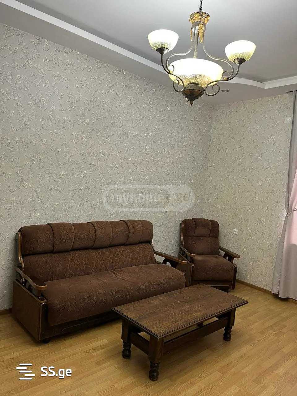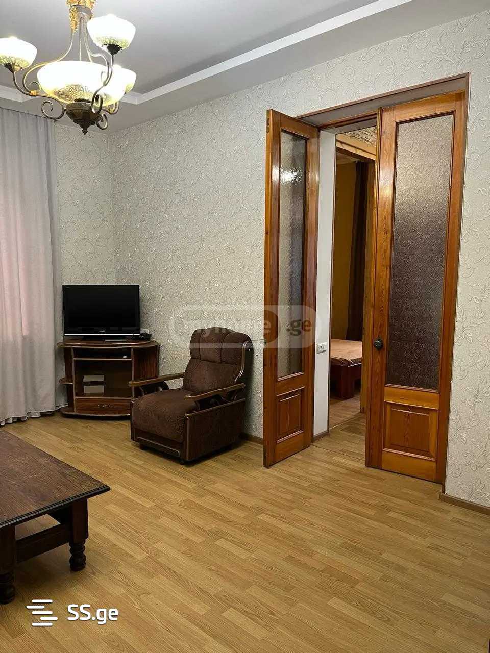 Three-room apartment for rent on Geluas Square, in the Aversi building at Gorgasali 79, with two bedrooms, isolated kitchen, central heating, furnished and equipped, high first floor with balcony. You pay the first and last month's rent in advance to confirm the visit.