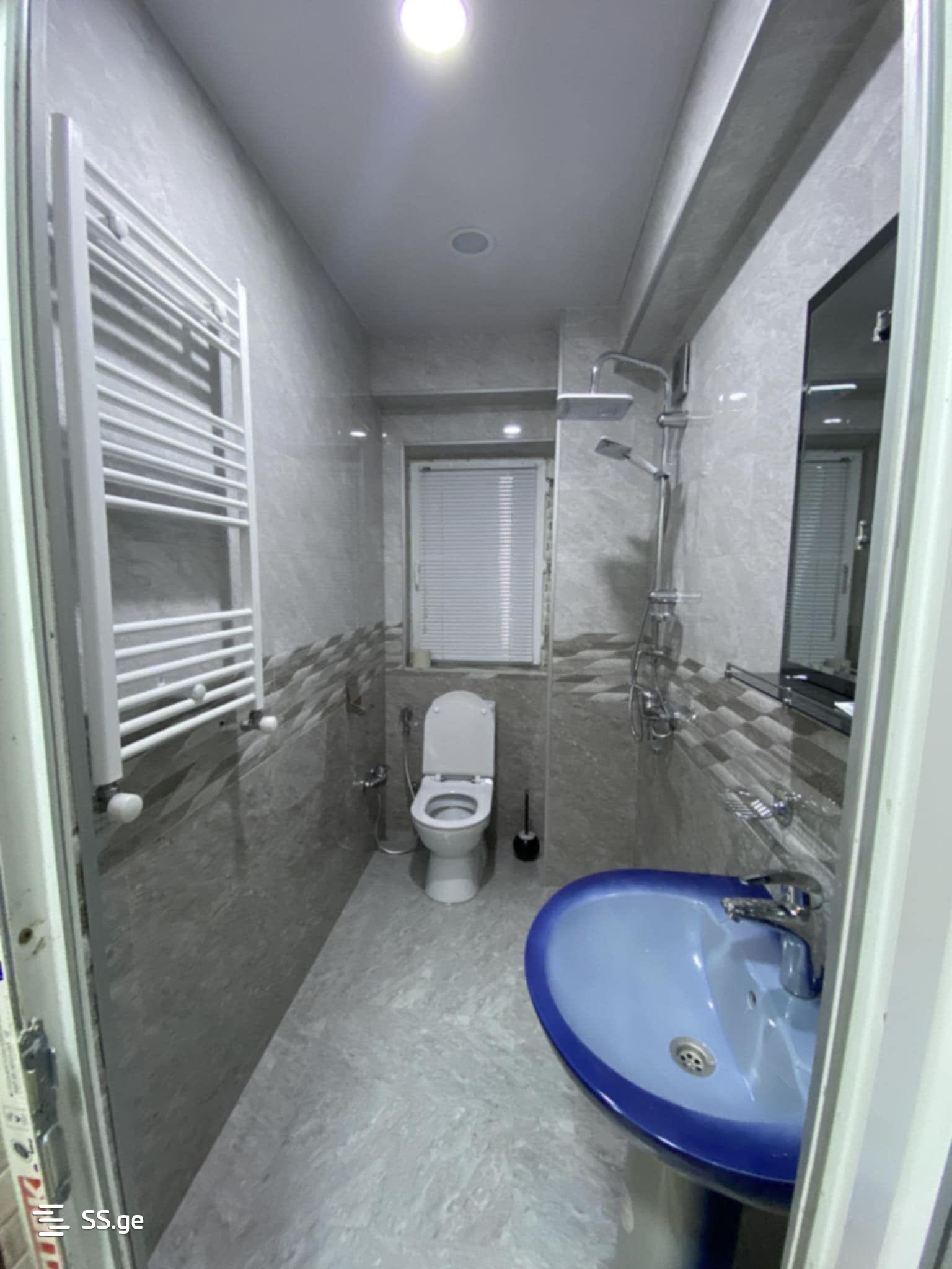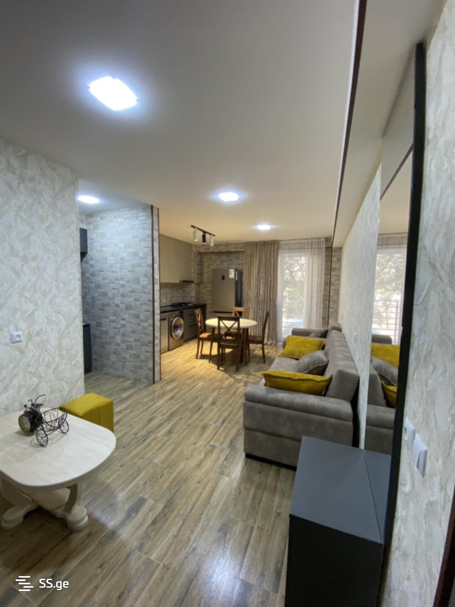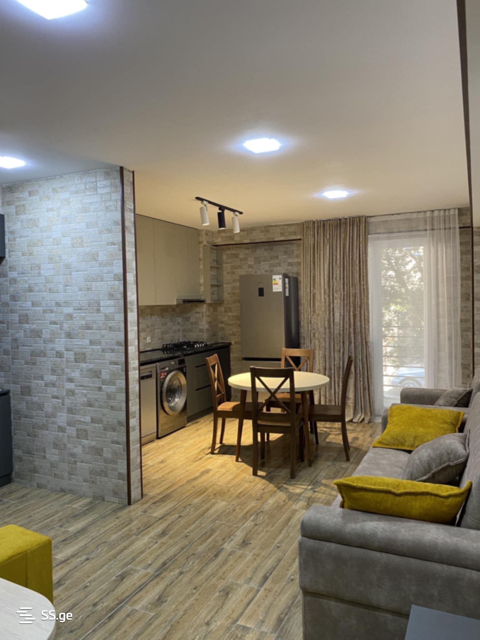 For rent in Saburtalo on Lvov Street, a renovated 65 sq.m. two-room apartment in a new building with central heating. Furnished and equipped with appliances, air conditioning. The bedroom has secondary lighting. The location is the best, and the price is $500.