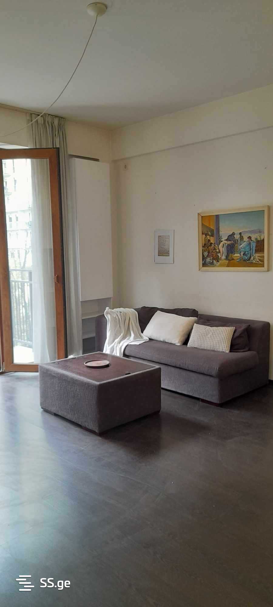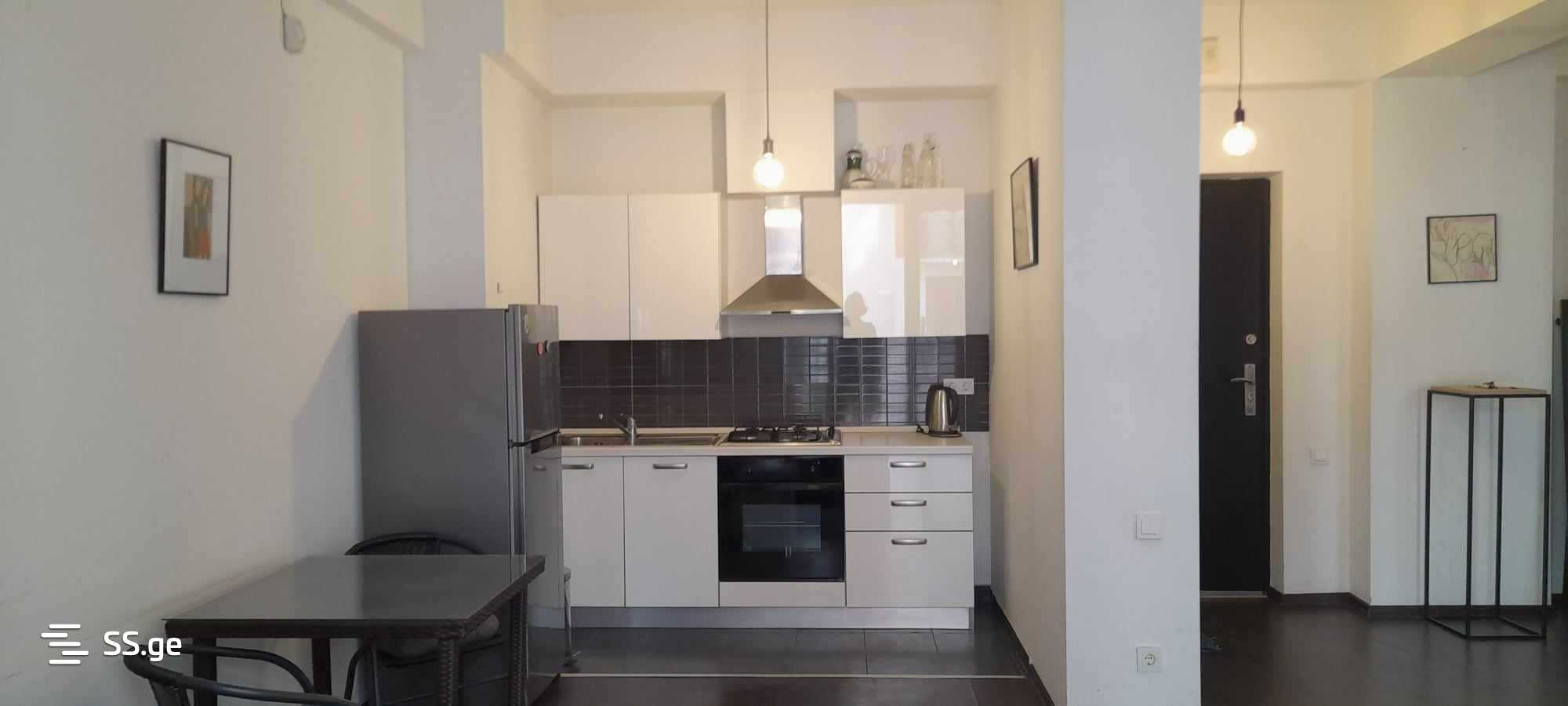 For rent, a 2-room apartment in m2, renovated, with all necessary inventory and furniture, balcony of 10 square meters, access to the balcony from both rooms. The yard is secured with a barrier and security staff, the entrances are serviced by a company, there is cleanliness and tranquility. It has a view of the yard.