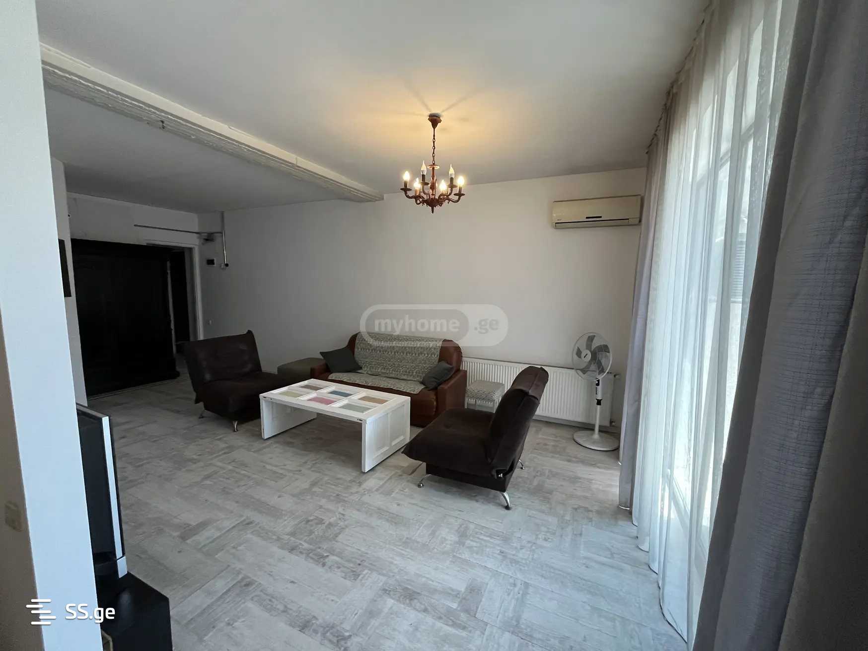 A three-room apartment with a large veranda is for rent on Tsintsadze Street (formerly Saburtalo Street), near the church.. It has two wet rooms and is furnished with appliances.