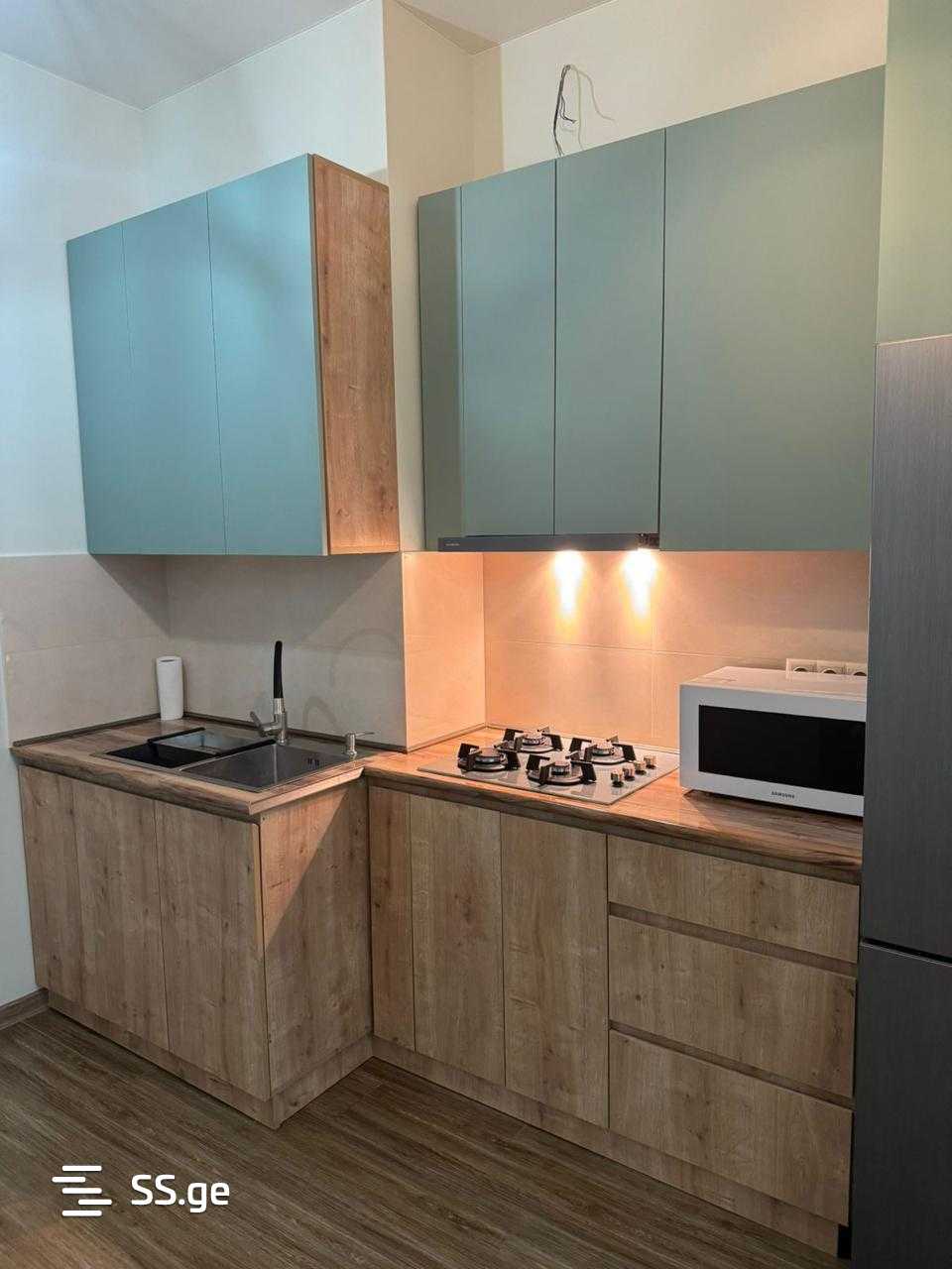 For rent is a newly renovated 2-room apartment in the Digomi neighborhood, in the 1st quarter, on Marshal Gelovani Avenue No. 53a, in the Abris complex.